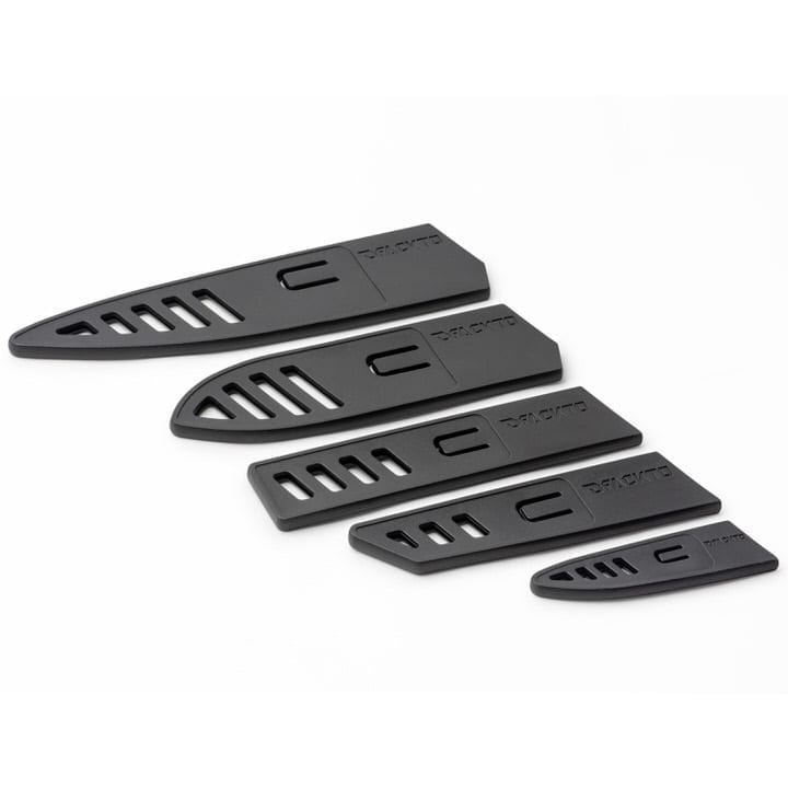 - Each knife includes a custom protective sheath for safe-keeping at home or on the go