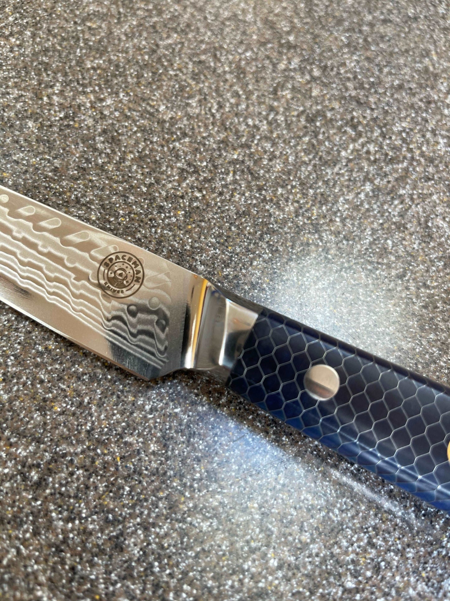 Crafted with a stunning 67-layer Damascus steel finish and forged from AUS-10 steel, this blade offers superior edge retention and durability, allowing it to handle everything from slicing fruits and vegetables to trimming meats with ease. The compact size makes it ideal for delicate tasks while still offering enough power for more substantial cutting jobs.
