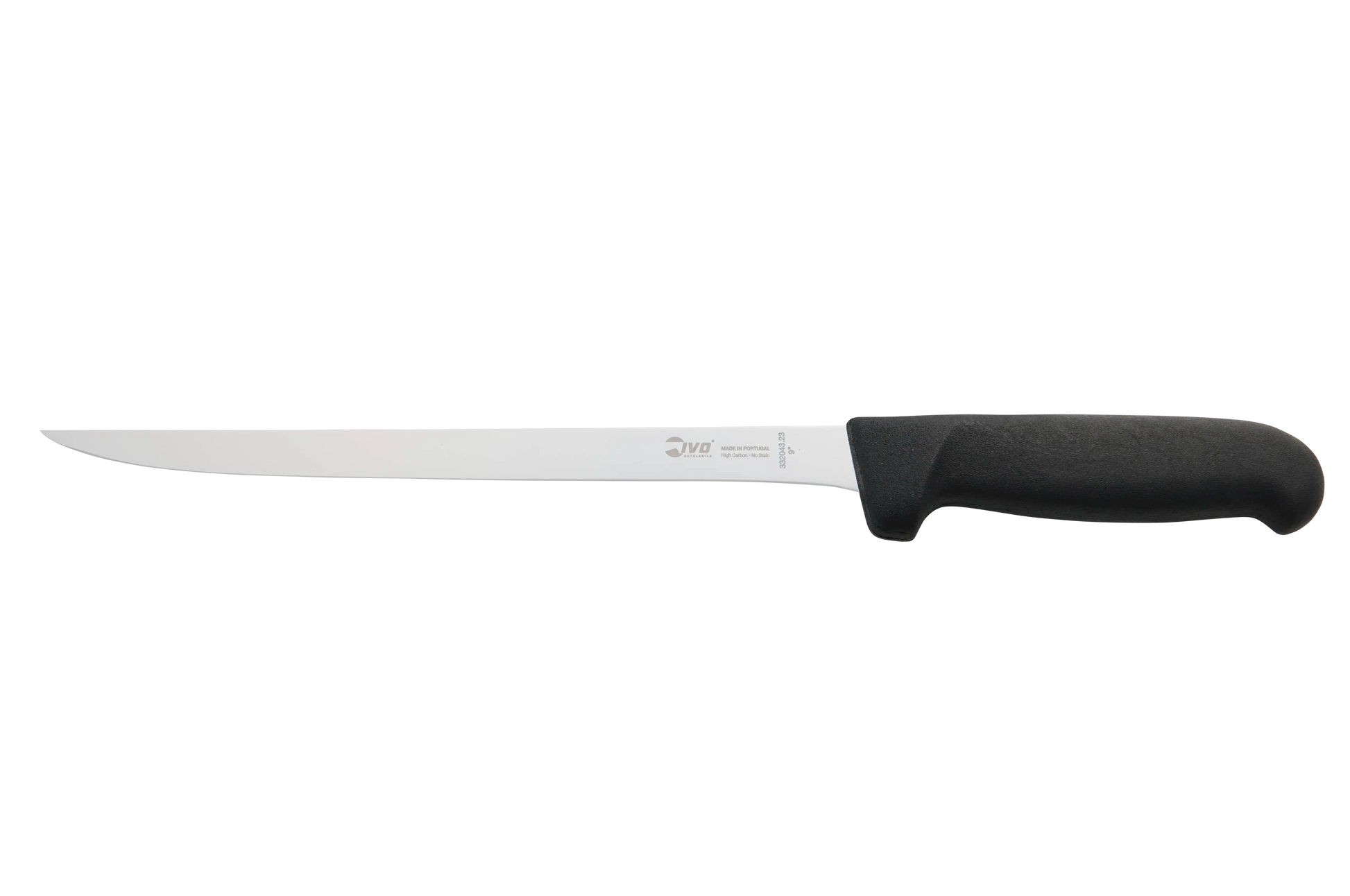 The 9" IVO Butchercut flexible fillet knife is primarily used for filleting fish. Its flexible blade allows for precise and delicate cuts along the contours of fish, making it easier to remove bones and skin while preserving the integrity of the fillet. This type of knife is essential for processors, fishermen, chefs, and anyone who regularly prepares fish dishes. Its flexibility enables it to navigate around bones and other obstacles, resulting in clean and professional fillets.