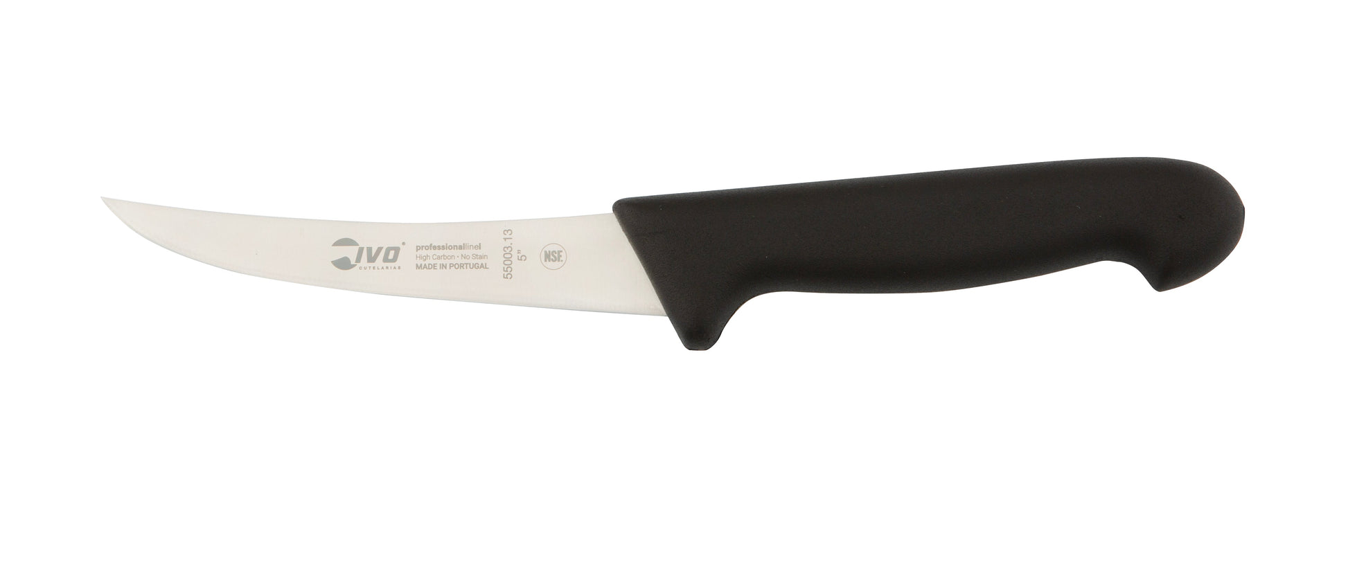 Attention all daring outdoor chefs and cooking enthusiasts! Let us introduce you to our IVO® Professional Line I 5" Black Semi-Flex Curved Boning Knife: a cost-effective yet top-performing choice for those who value excellence in their outdoor kitchen equipment. This blade is crafted from stamped high-grade X50CrMoV15 stainless steel, guaranteeing long-lasting durability and superior cutting capabilities. Its laser-tested cutting edge ensures a consistently sharp blade, perfect for delicate tasks like filleting fish or deboning meat during your outdoor culinary escapades. With an ergonomic Dryflex TPU handle, you'll have maximum comfort and control, making it easy to work with precision in any outdoor environment. Step up your outdoor cooking game with the IVO® Professional Line I Semi-Flex Curved Boning Knife—designed to conquer any cooking challenge with style and reliability.