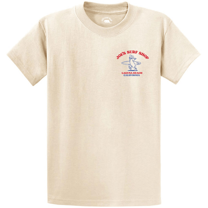 The Joe's Surf Shop Surfing California T Shirt is one of our most popular designs. Show your love for the old school surf culture with our California design. This design is simple yet says a lot. It encompasses surfing in Laguna Beach. Look cool in the Joe's Surf Shop Surfing California T Shirt. For those looking for surf shops and surf wear, here you go!
