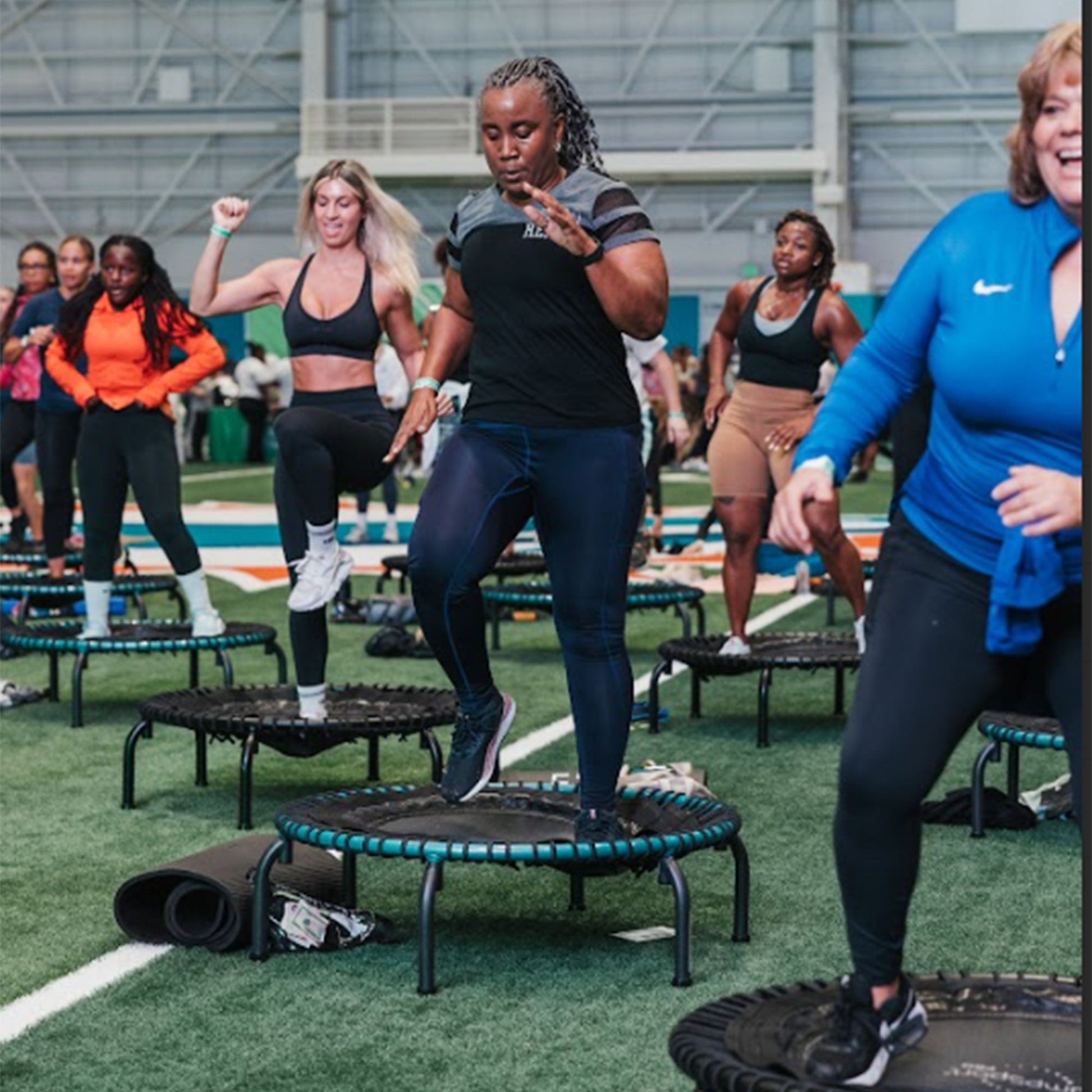 Enhance your cardio workout routine with the JumpSport 350 Pro Fitness Trampoline, ideal for fitness enthusiasts of all levels looking for effective low-impact exercise. Tailor your workouts to meet your fitness goals through various circuits or high-intensity interval training.