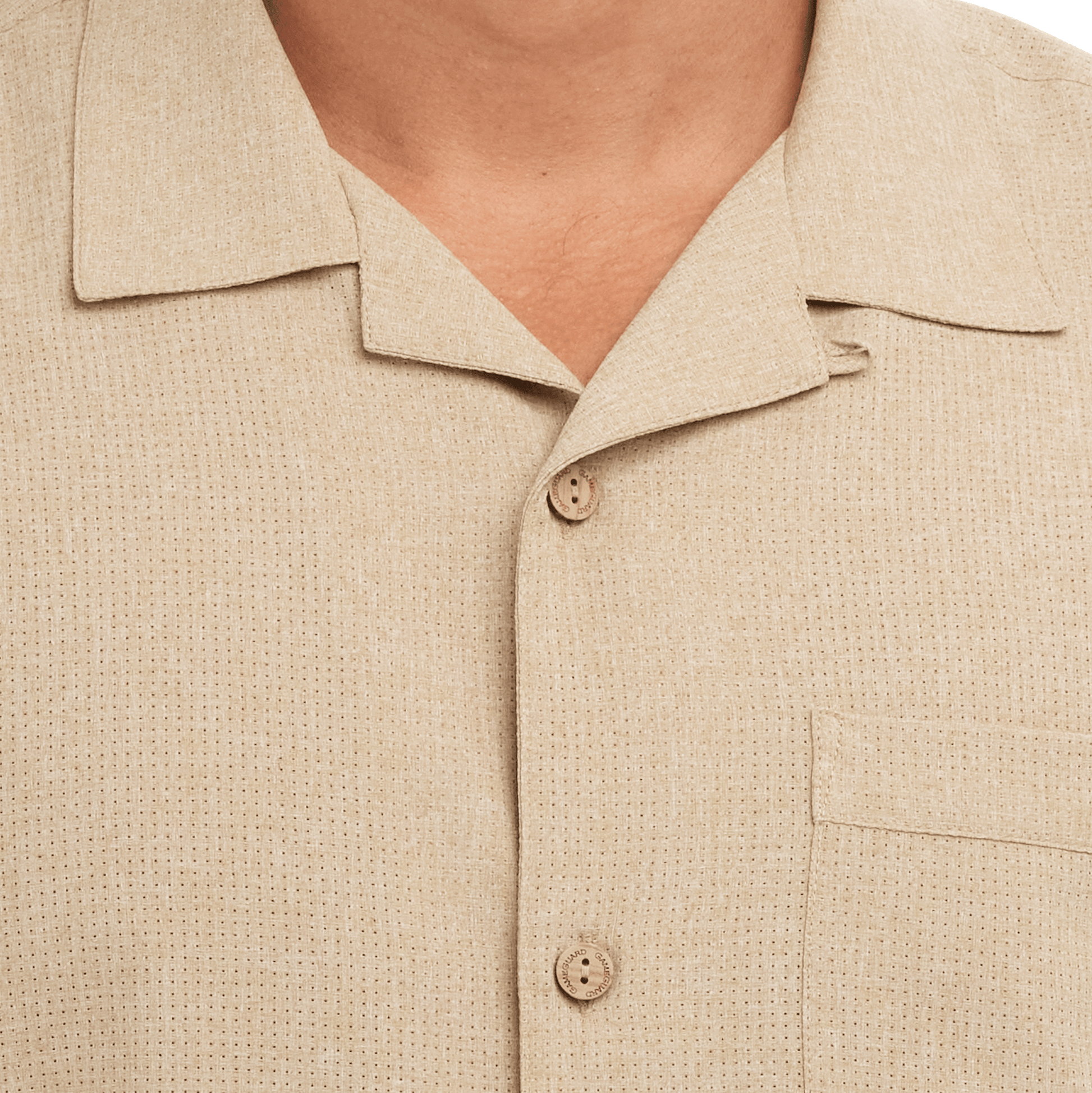 Designed for ultimate comfort on your next outdoor adventure, the Camp Shirt is built for fishing trips, camping getaways, and casual hikes. The perforated lightweight fabric offers breathability, while moisture-wicking properties keep you dry throughout the day. With UPF 30+ sun protection, you're shielded from the elements during long hours outdoors. The open collar and straight hem with split side seams provide a relaxed yet functional fit. A slip chest pocket offers easy storage, and a lens cleaner inside the front placket ensures your gear stays ready for action. Quick-drying and ready for whatever your outdoor hangout throws at you, the Camp Shirt is your go-to for relaxed adventures.