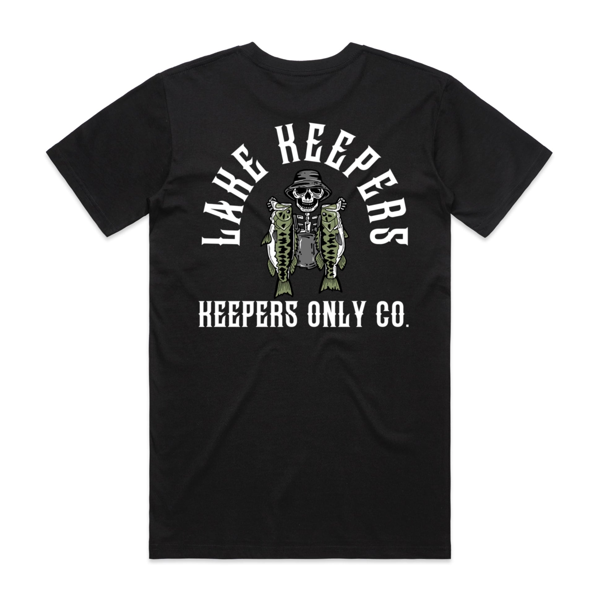Whether you’re fishing, boating, or just enjoying the view, the Lake Keepers Black T-Shirt is your go-to for representing the lake life in style.
