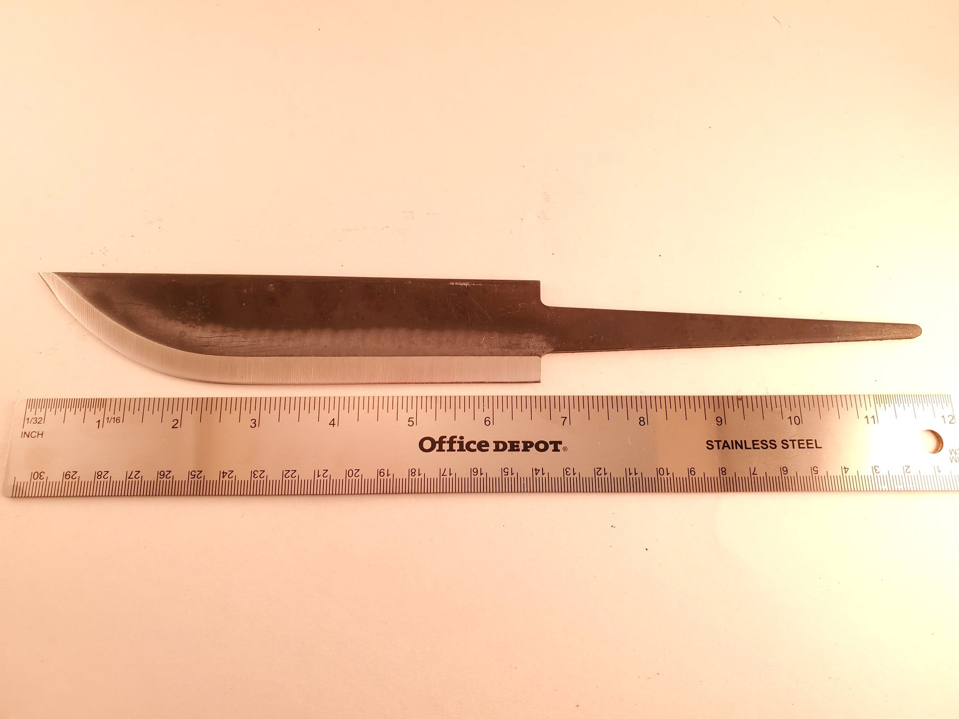Lauri-Leuku-175; (175x37/39x3.25mm), The Leuku is the Scandinavian camp knife used for chopping and butchering. The blade is a bit under 7" long, 1 1/2" wide, and .132" thick. The tang is about 5".May be paired with 24*44*3-STRAIGHT bolster shown below.