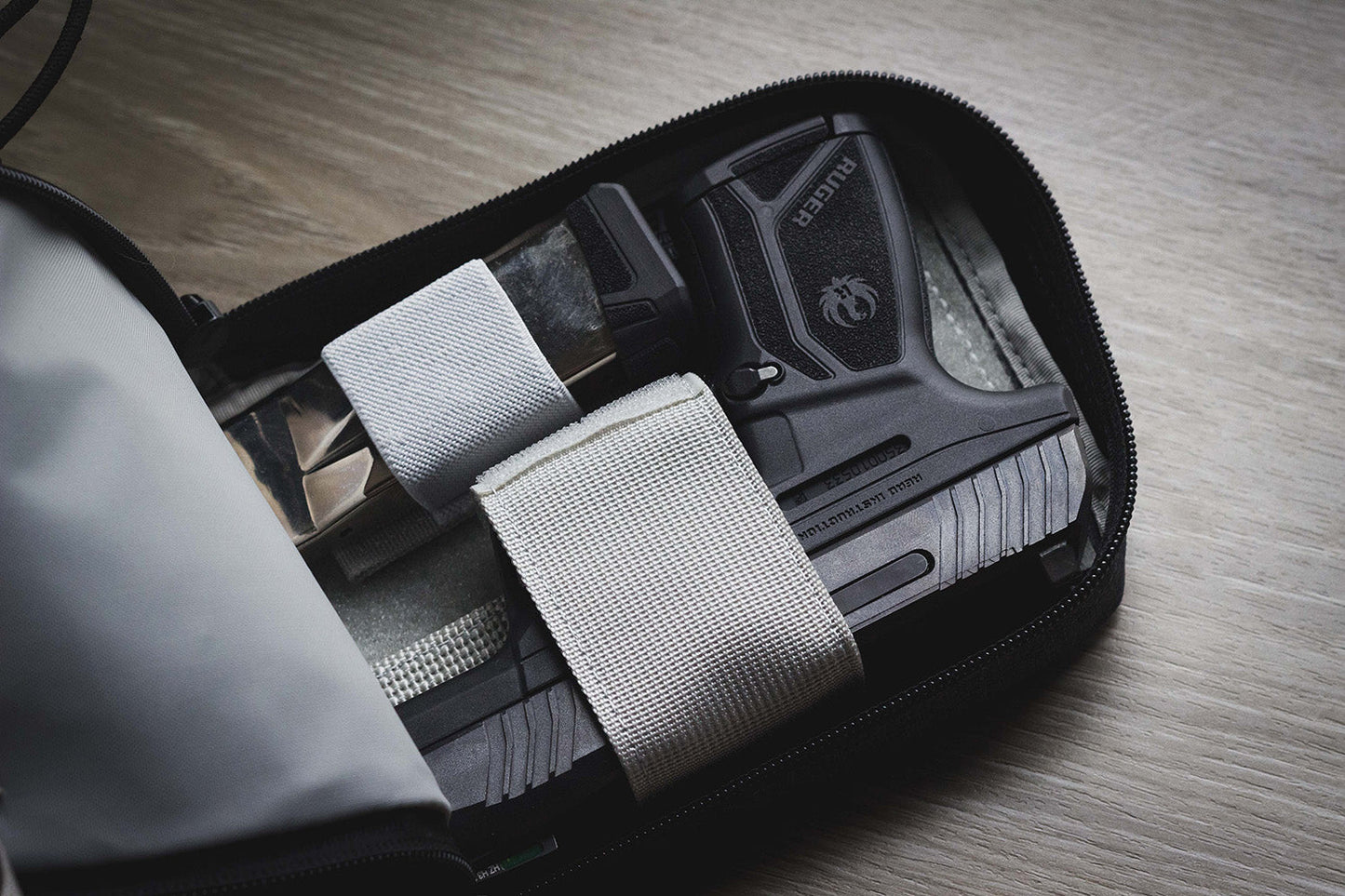 - Rip-cords in firearm compartment provide quick access to your handgun
