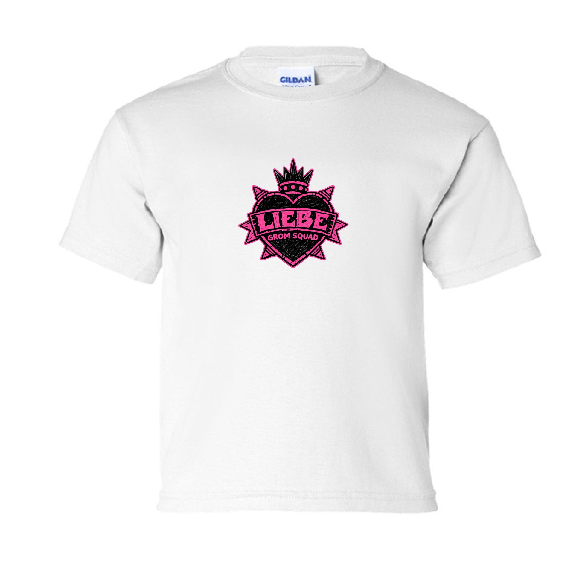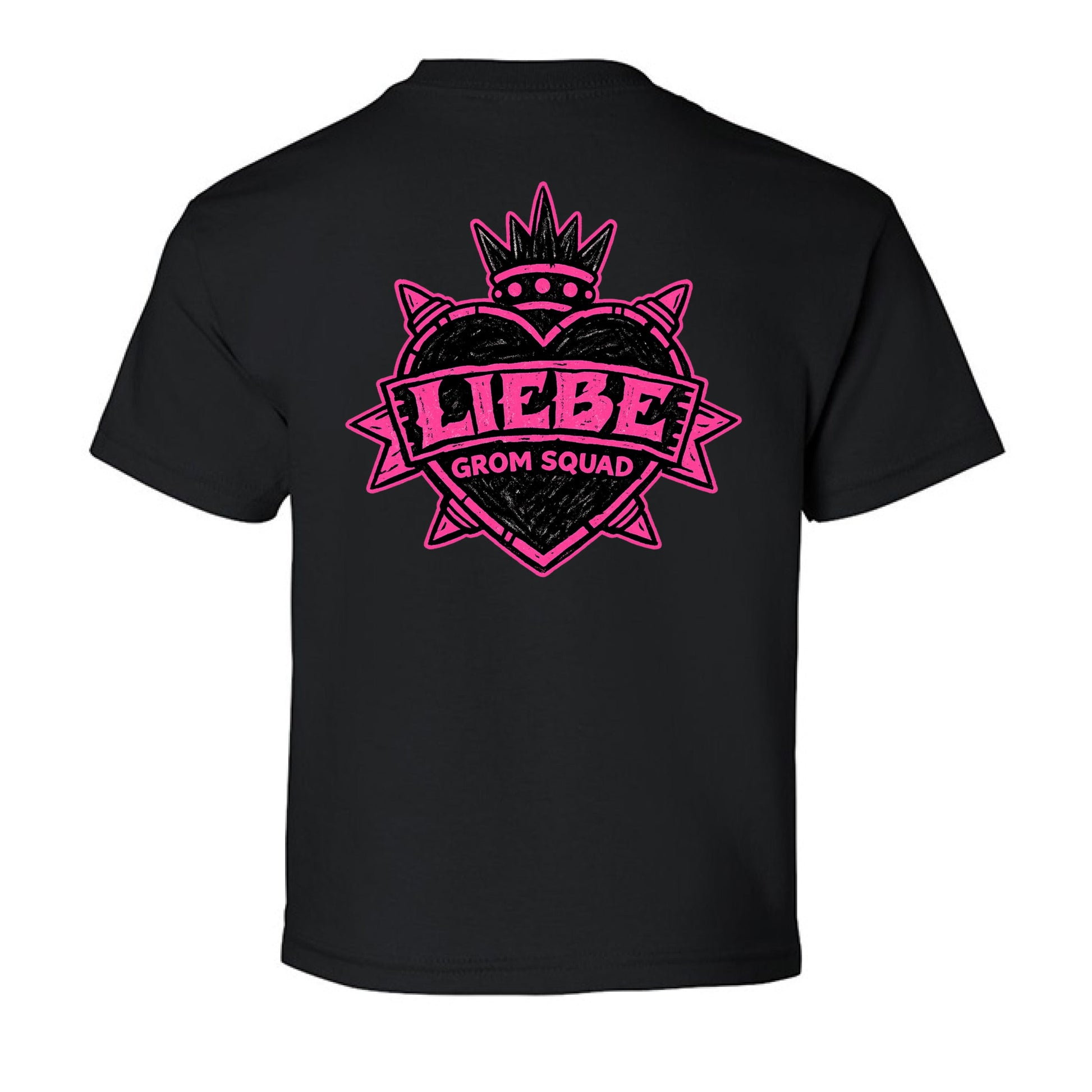 This tee features the Liebe Grom Squad Pink Punk Heart logo in a crayon style look that feels playful, bold, and unapologetically kid driven. It keeps the punk attitude of Liebe while celebrating the creativity and energy that groms bring to skateboarding.