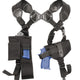 Please be sure to select your desired holster size and shoulder harness type. Double-sided harnesses will include a double mag pouch. The dual shoulder holster can accommodate a wide variety of our accessory items including magazine pouches, speed loader pouches, handcuff pouches, flashlight holders, and knife pouches. Sizes for this double shoulder holster are listed below. The M/ASH system is ambidextrous - simply reverse holster and mag pouches.