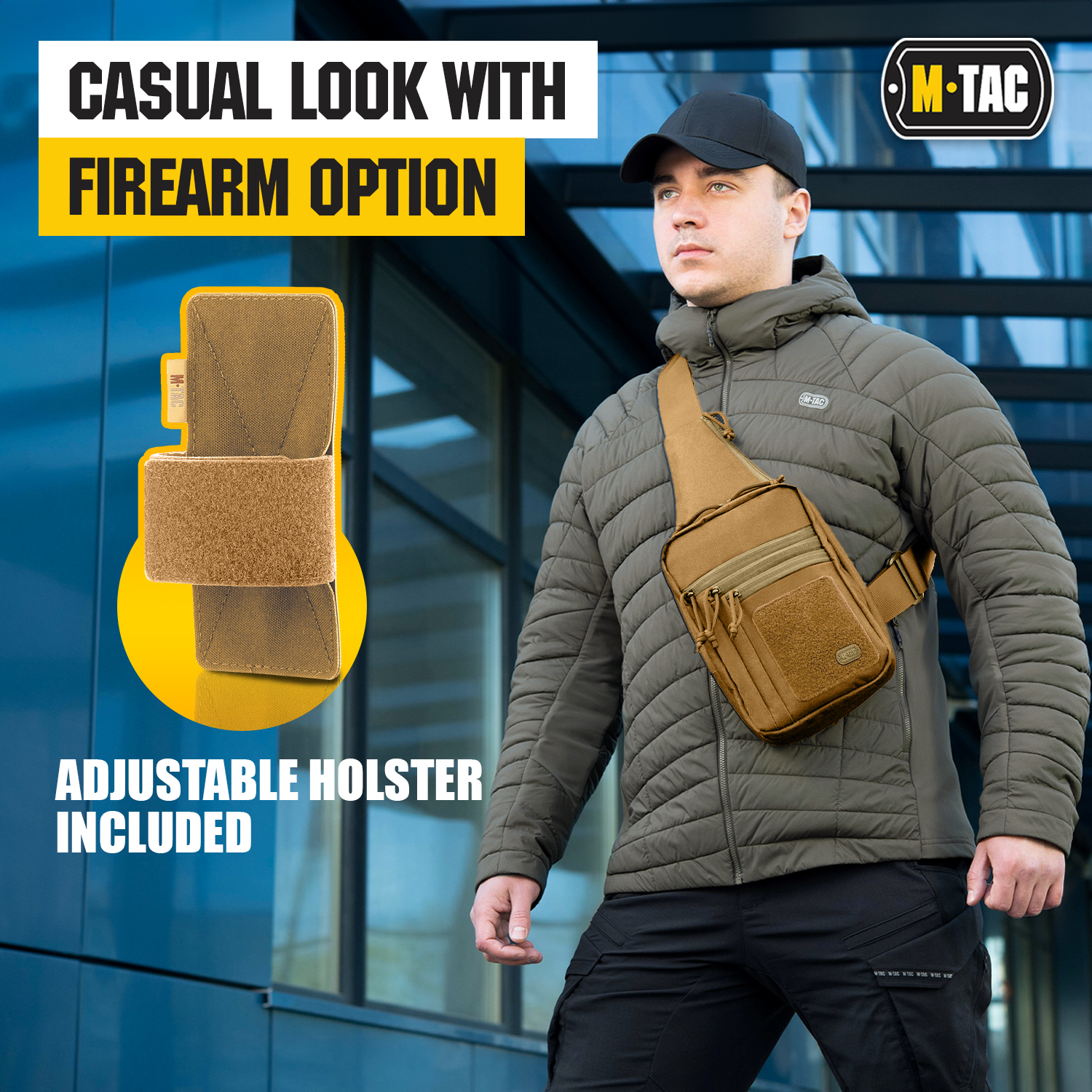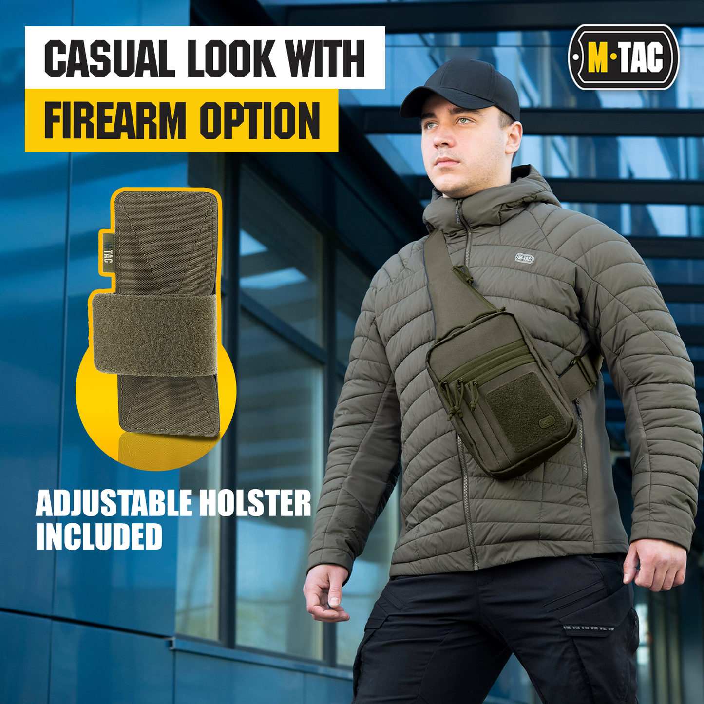 The M-Tac shoulder holster bag is designed for concealed carrying of a weapon. The holster is installed inside the bag. This holster ( included ) is compatible with most types of handguns. With the special strap, the bag can be easily and quickly opened in order to remove the weapon. The bag is equipped with a convenient adjustable shoulder strap. The tactical bag shoulder chest pack from M-Tac has five additional compartments for storing personal belongings, which will allow unloading the pockets of pants, shirts, jackets, or shorts. The front loop platform allows you to attach various moral patches.