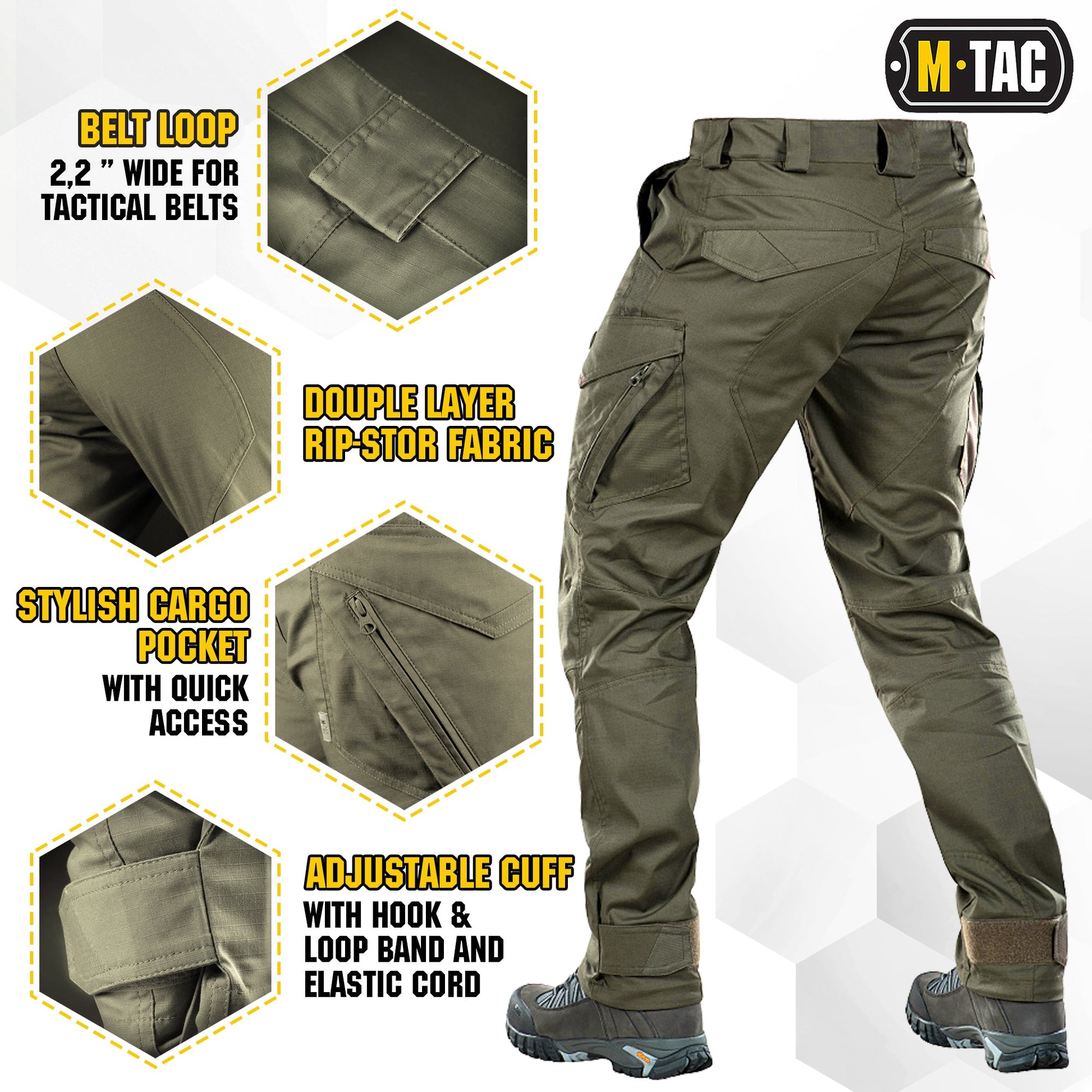 The tactical pants Aggressor Gen.II Flex are suitable for training, shooting, work, and for a business trip or a casual walk. Made from light, monophonic rip-stop fabric (cotton, polyester, elastane) with water and mud-proof Teflon repellent. The fabric with the maintenance of polyester and cotton is pleasant to a body, well keeps color and withstand the wear and tear. The main task of the designers was to maintain the comfort of movement, and they coped with this task successfully. Pants create a feeling of lightness and look stylish and solid. Practical wide pockets with additional reinforcement in the most vulnerable to abrasion. Belt loops up to 2.2 inches wide. The front straps are sewn with D-shaped plastic rings for attaching additional equipment. Zippers and buttons from the world leader in the production of accessories YKK. Aggressor Gen.II Flex from M-TAC is a successful combination of a well-thought-out cut, high quality and wide functionality. Well-fitting trousers will provide you with a proper comfort.