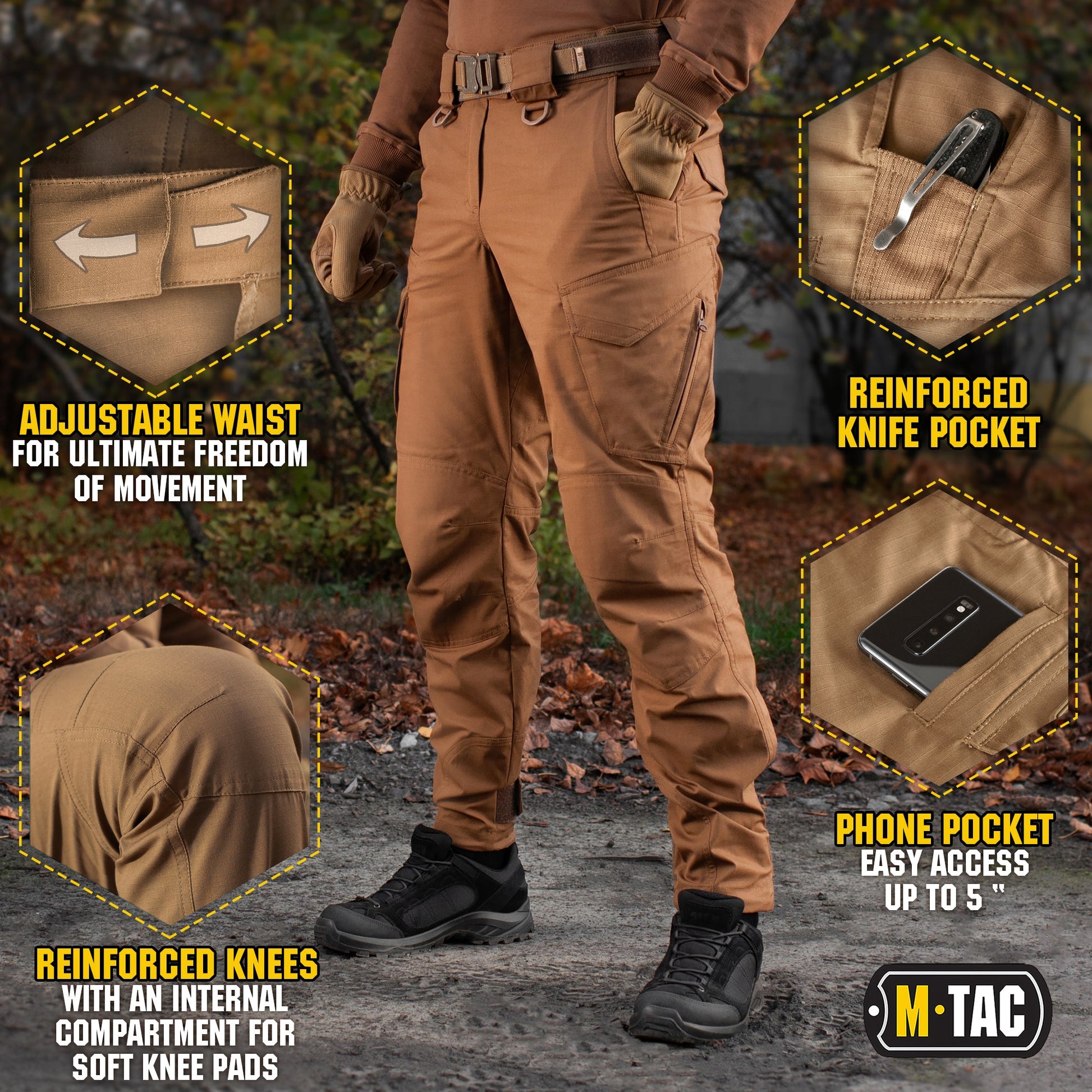 The Tactical pants Aggressor Gen.II Flex are suitable for training, shooting, work, and for a business trip or a casual walk. Made from light, monophonic rip-stop fabric (cotton, polyester, elastane) with water and mud-proof Teflon repellent. The fabric with the maintenance of polyester and cotton is pleasant to a body, well keeps color and withstand the wear and tear. The main task of the designers was to maintain the comfort of movement, and they coped with this task successfully. Pants create a feeling of lightness and look stylish and solid. Practical wide pockets with additional reinforcement in the most vulnerable to abrasion. Belt loops up to 2.2 inches wide. The front straps are sewn with D-shaped plastic rings for attaching additional equipment. Zippers and buttons from the world leader in the production of accessories YKK. Aggressor Gen.II Flex from M-TAC is a successful combination of a well-thought-out cut, high quality and wide functionality. Well-fitting trousers will provide you with a proper comfort.