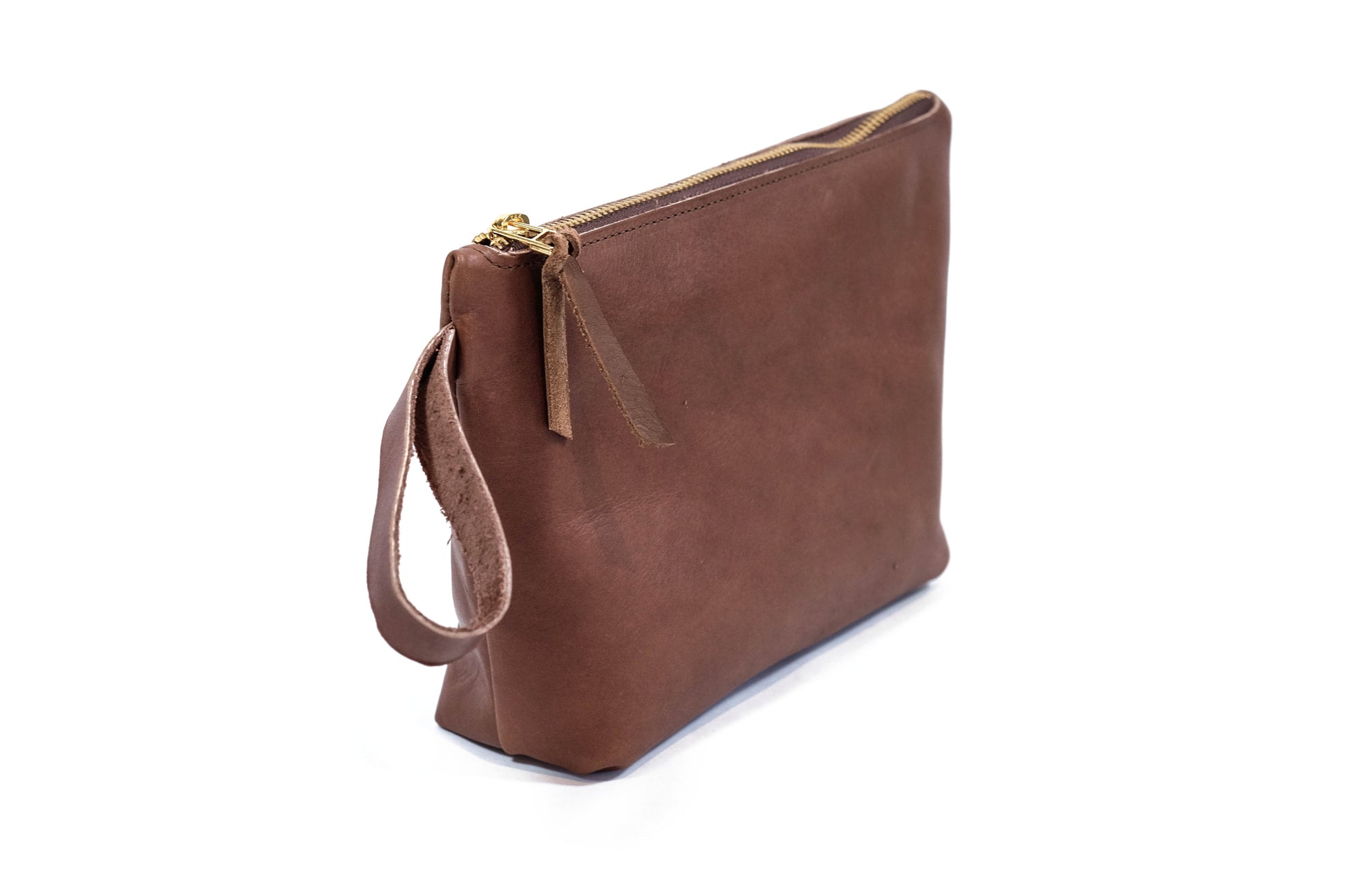 A classic all-leather zipper pouch. Features a large pocket for toiletries, makeup, pencils and pens, etc.