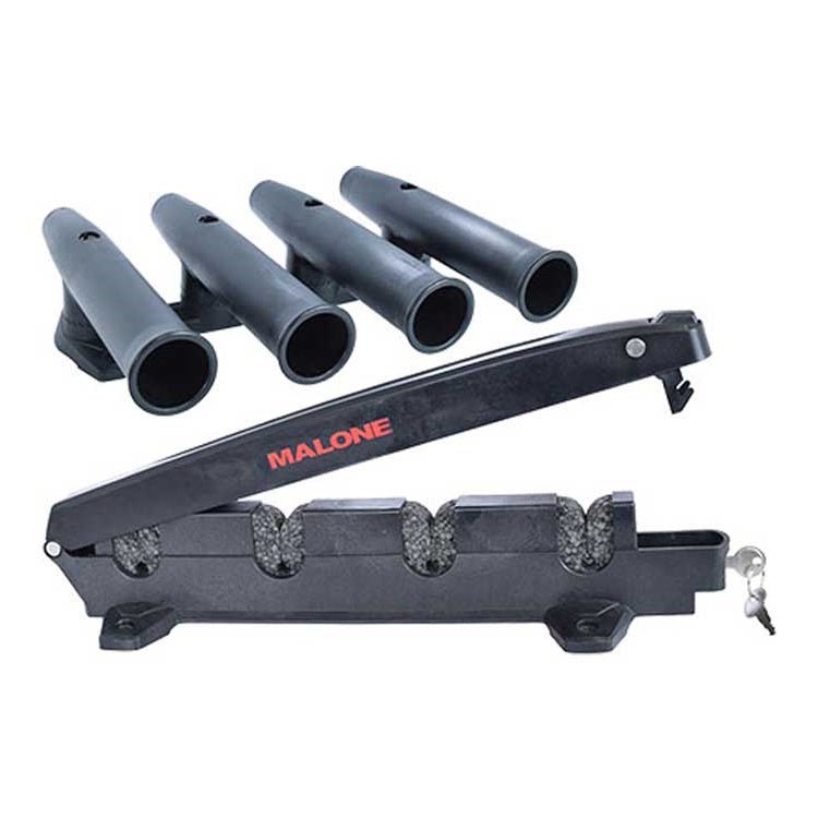 The Malone Striper-4™ Fishing Rod Carrier is the perfect solution for safely transporting up to four large fishing spinning rod & reels. With corrosion-resistant components and key locking carriers, you can confidently transport your expensive setups, while conveniently attaching the carrier to most load bars. Assembly tools, keys, and a Lifetime Limited Warranty are included for added convenience and peace of mind.