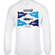 This Hook & Tackle® Fish Flags performance fishing long sleeve shirt features tag flags on the back of the shirt. and a Hook & Tackle® logo on the chest and sleeve.