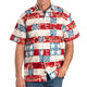 Combine your love of Hawaiian shirts with your patriotic side in one great style! Our colorful patriotic Hawaiian shirt is a great choice for the man of style looking to show off his love of the red, white, and blue. Liberty, freedom, stars, stripes, and Old Glory are scattered throughout the patchwork design along with the liberty bell, eagles, stamps, and maps of America. Truly tasteful and patriotic.