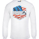 This Hook & Tackle® Star Spangled performance fishing long sleeve shirt features a shield containing the American flag on the rear and the Hook & Tackle® logo on one sleeve and on the front.