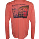 Lightweight sun protective SPF 50 fishing shirts. We place Travis Sylvester's "Rainbow Reflections" on the back of this salmon-colored long sleeve T-shirt. The Fincognito logo adorns the left chest. 100% polyester with PURE-Tech wicking technology. Our fly fishing apparel works well on the water or as hiking clothes on the trail. Great sun protection, moisture wicking apparel.