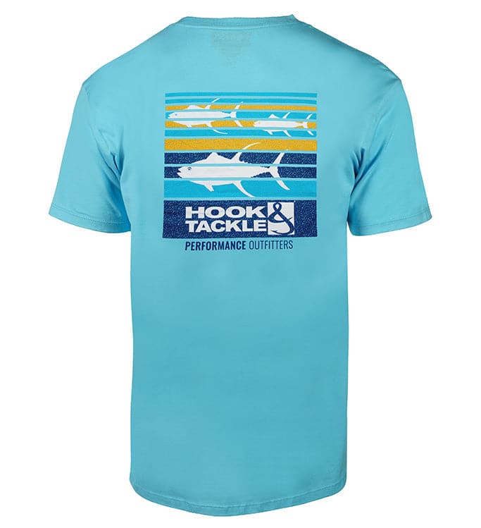 This Hook & Tackle Tuna Lane fishing t-shirt features a graphic design of three tuna on the back of the shirt. This soft-touch premium cotton fishing t-shirt offers a comfortable fit, feel and durability while retaining its shape and elasticity. The shirt also features a front chest print of the Hook & Tackle® logo.
