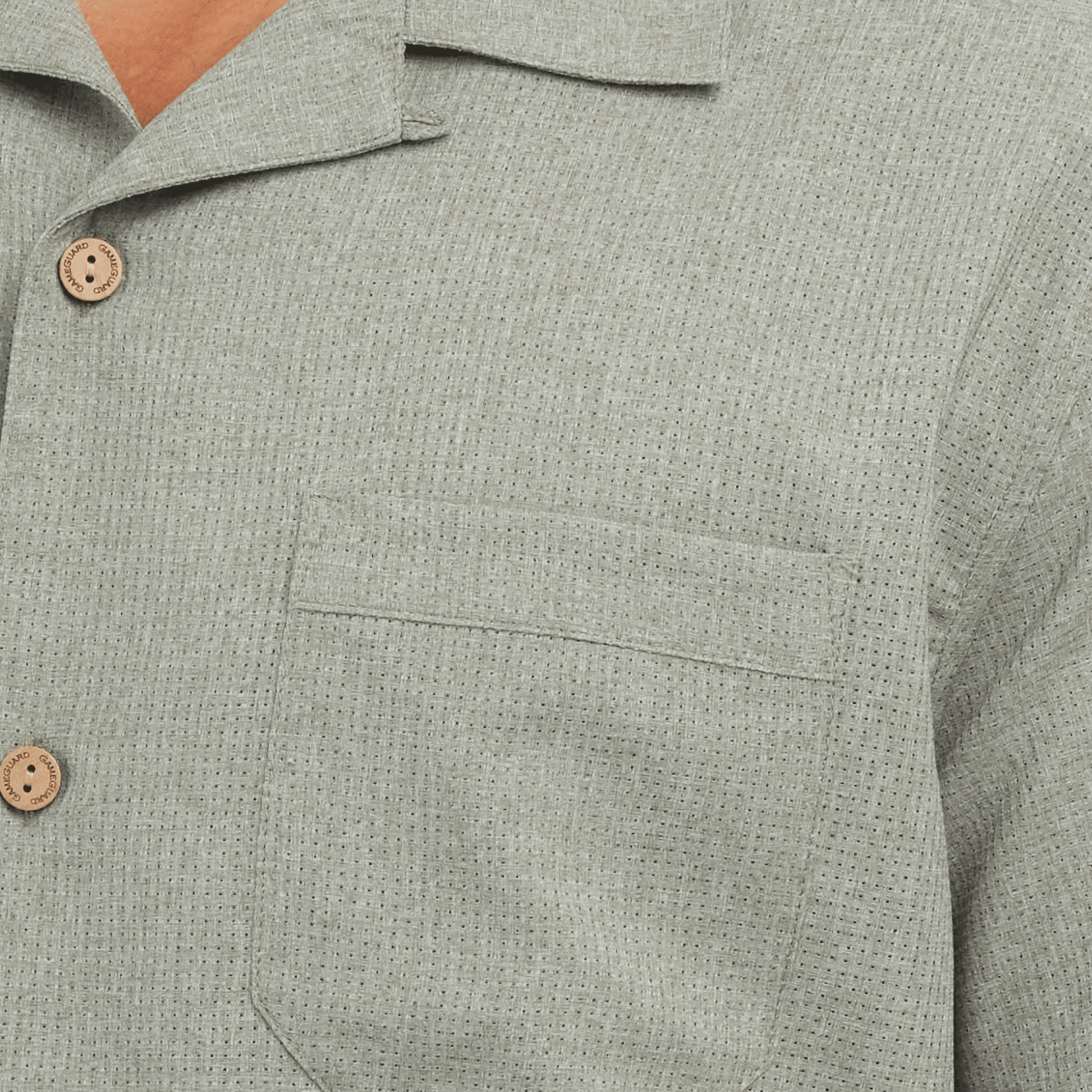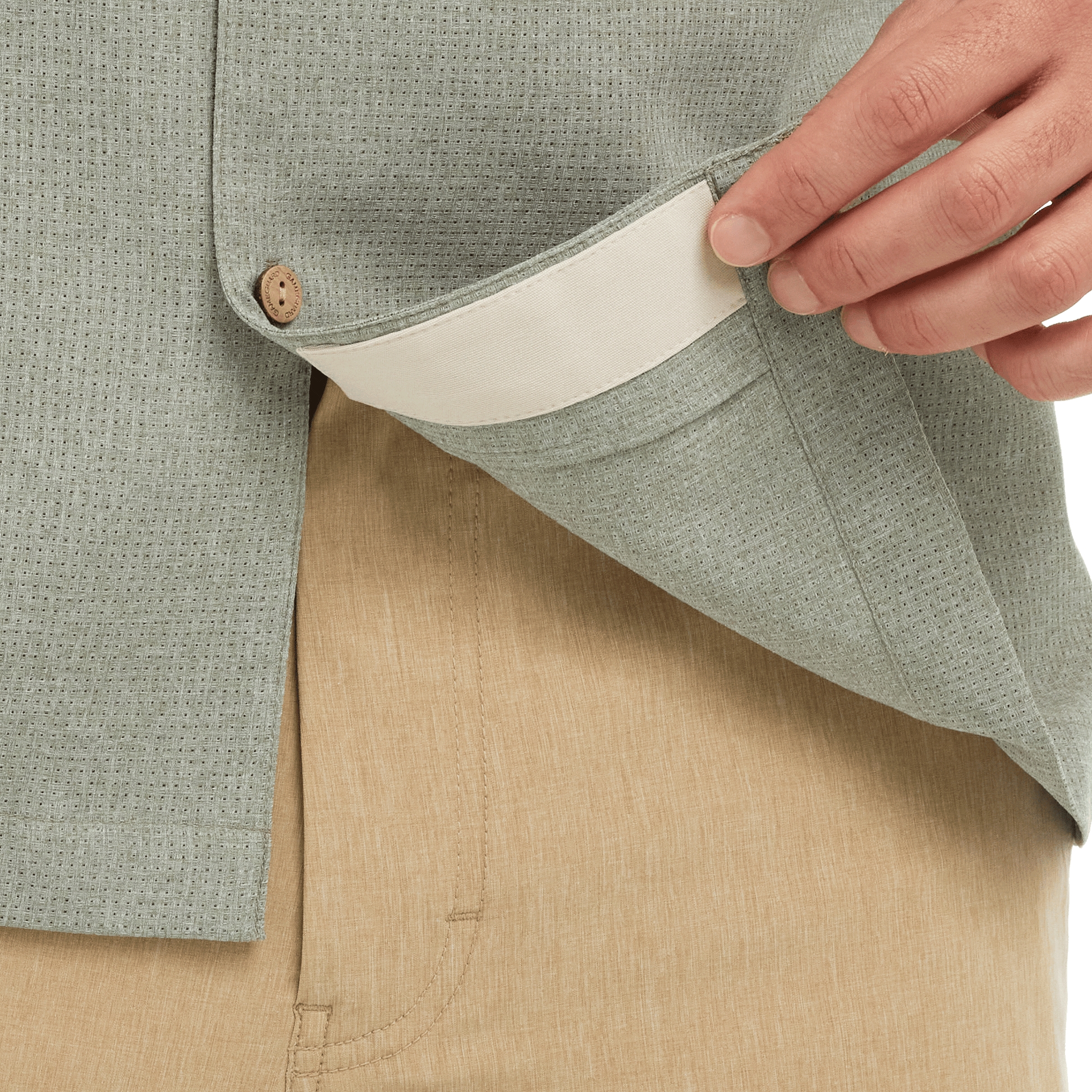 Designed for ultimate comfort on your next outdoor adventure, the Camp Shirt is built for fishing trips, camping getaways, and casual hikes. The perforated lightweight fabric offers breathability, while moisture-wicking properties keep you dry throughout the day. With UPF 30+ sun protection, you're shielded from the elements during long hours outdoors. The open collar and straight hem with split side seams provide a relaxed yet functional fit. A slip chest pocket offers easy storage, and a lens cleaner inside the front placket ensures your gear stays ready for action. Quick-drying and ready for whatever your outdoor hangout throws at you, the Camp Shirt is your go-to for relaxed adventures.