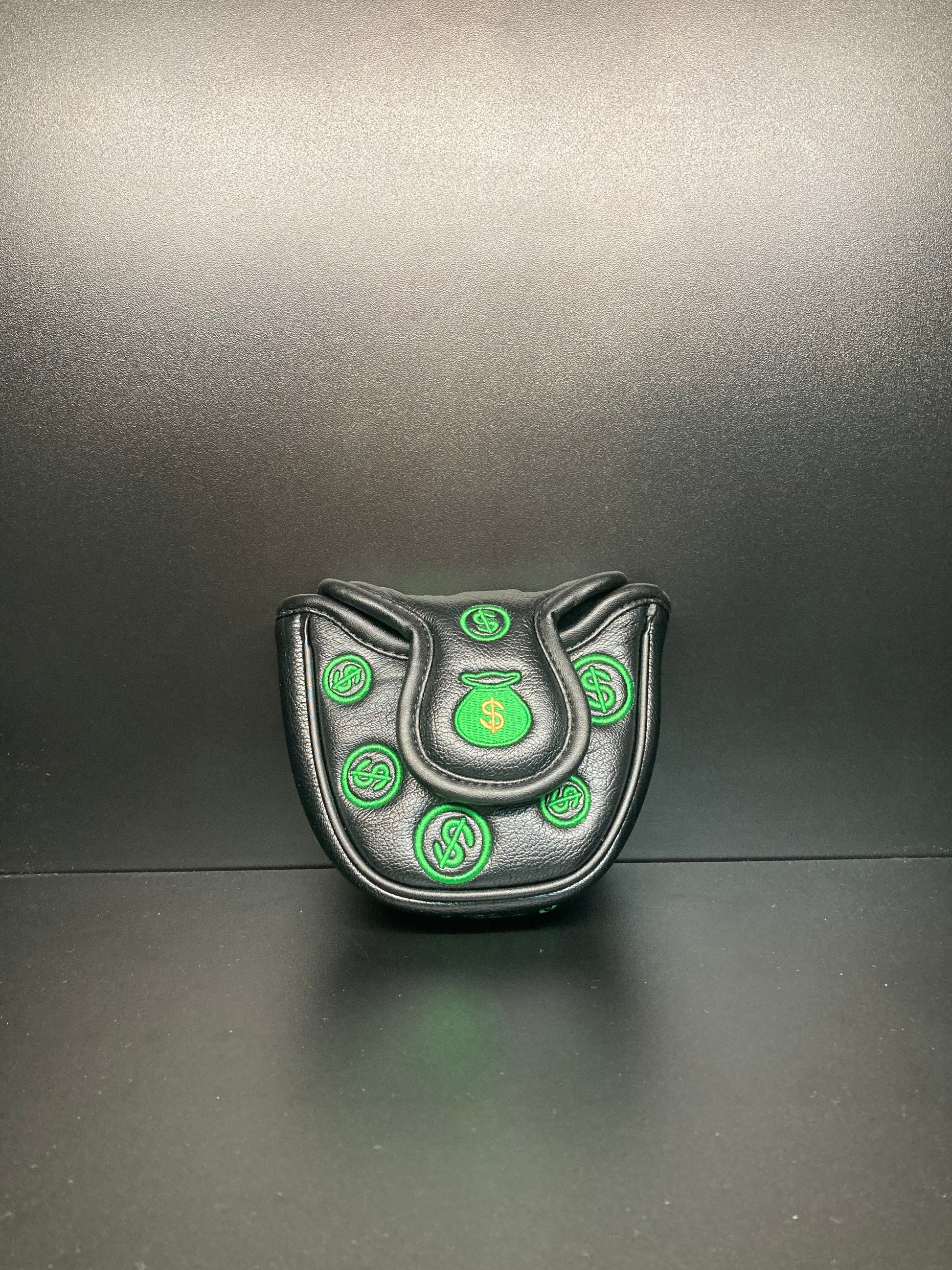 Crafted with attention to detail, the Moneybag Headcover features a design inspired by the iconic symbol of wealth: a bag of money. Made from high-quality materials, this headcover typically resembles a green moneybag, complete with dollar signs or other currency symbols embroidered or printed on its surface.
