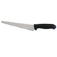 The Mora Bread knife has a serrated blade angled so you can comfortably use it on a cutting block. The handle has a soft over mold for increased comfort and improved grip.