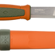 The ergonomic barrel-shaped polymer handle features a soft friction grip, finger guard and a 2.5 mm thick, polished profile-ground blade made of recycled Swedish stainless steel, which provides both strength and stability in every cut. Thanks to the blade and handle design, the knife is ideal for working safely and efficiently in various weather conditions during all seasons of the hunt. The polymer knife sheath is symmetrical, which means it suits both right and left-handed users, and has a leather strap made of Swedish vegetable-tanned leather that can be attached easily to your belt. Compatible with Morakniv Multi-Mount Kit for Kansbol.