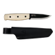A reliable full tang bushcraft knife, the Wit is perfectly crafted for a variety of demanding and unexpected situations and specifically designed for precision work.Made of carefully selected bright ash wood from European FSCⓇ certified forests, the ergonomic shaped handle fits a variety of grips. Experience strength and stability in every cut with a 2.5 mm thick full curvature and drop point tip black knife blade, made of recycled Swedish stainless steel. A beautifully balanced contrast between the bright ash wood and the shiny edge of the blade is made possible by the black PC-coating. Protect the sharp edge of the knife with a vegetable tanned leather sheath, designed with a belt loop. Keeping the true bushcrafter’s needs in mind, the spine of the blade fire starter compatible.
