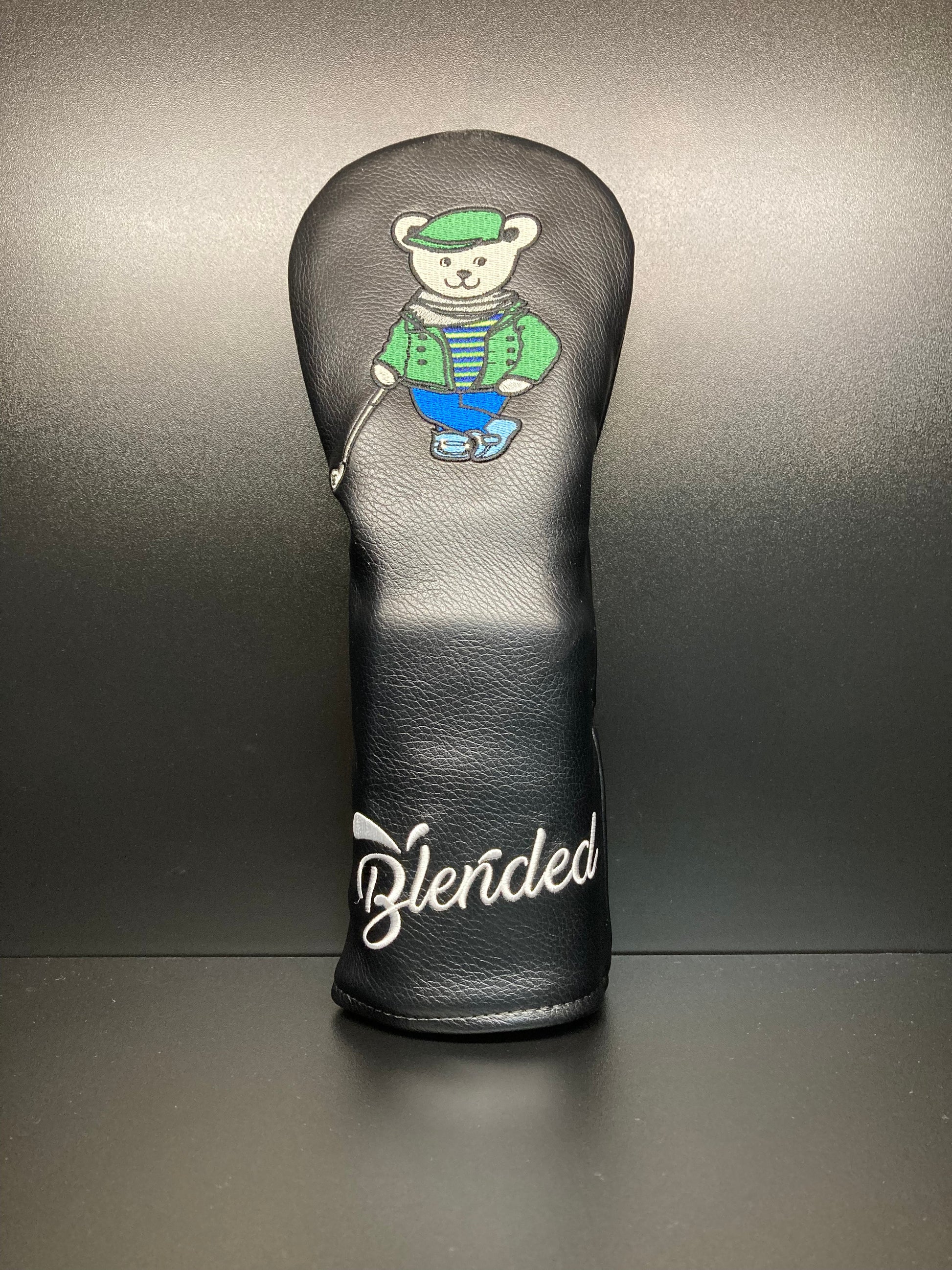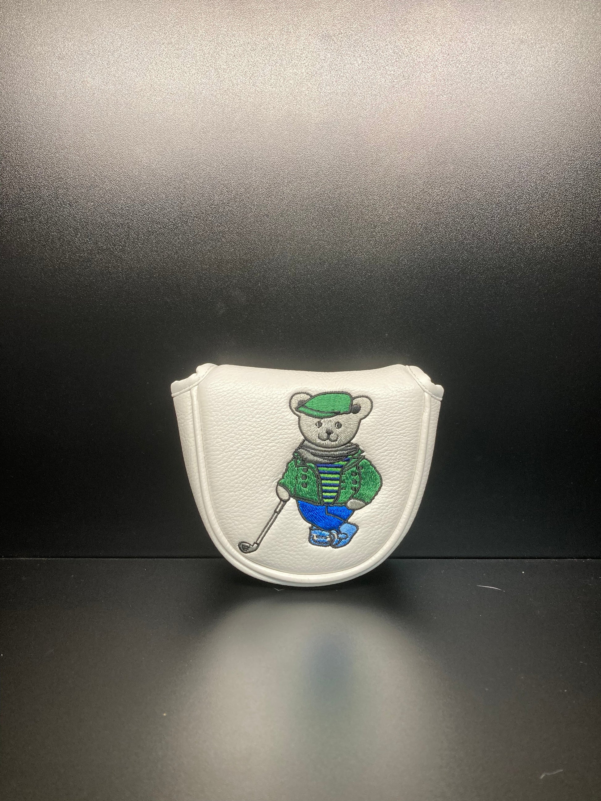 A leather Mr. Bear headcover might be a charming and protective accessory for a golf club. Picture a golf club headcover designed to resemble a bear's head, crafted from high-quality leather. It could feature intricate details like stitching to outline the bear's facial features—its eyes, nose, and ears. The leather would likely be sturdy yet supple, providing durability and a touch of luxury. The design might be whimsical, adding personality to the golfer's equipment while also serving the practical purpose of safeguarding the club head. Overall, it would be a distinctive and eye-catching accessory for any golfer's bag.