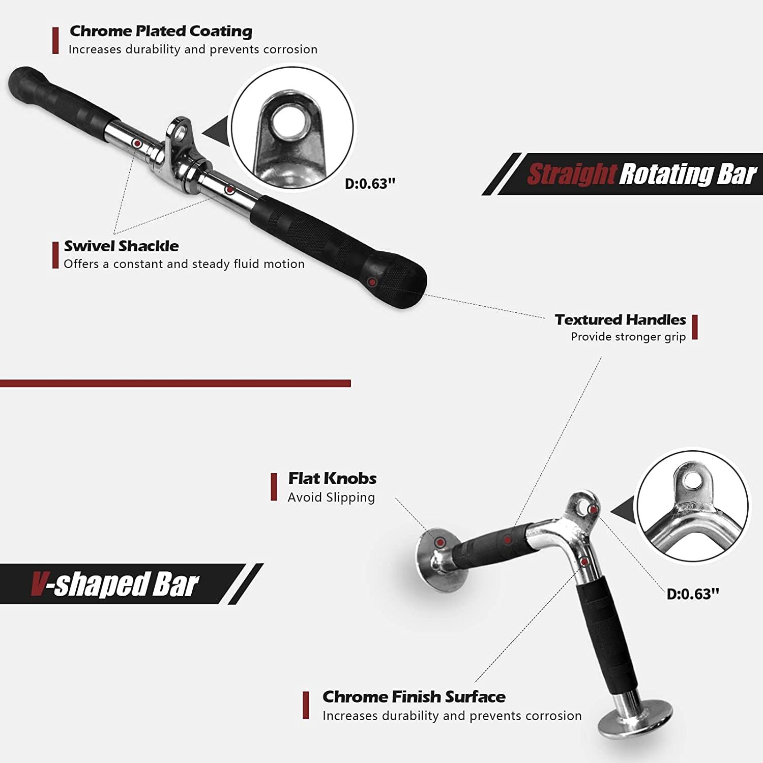 • Rotating Straight Bar: designed with non-slip handle to increase your potential effect and prevent accidental sliding while exercising