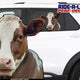 Can a cow fit in the backseat? Of course! Our Ride-A-Long perforated window decals give the appearance of someone (or something) riding behind you. These have tiny holes in them so you can view through them from inside of the vehicle.