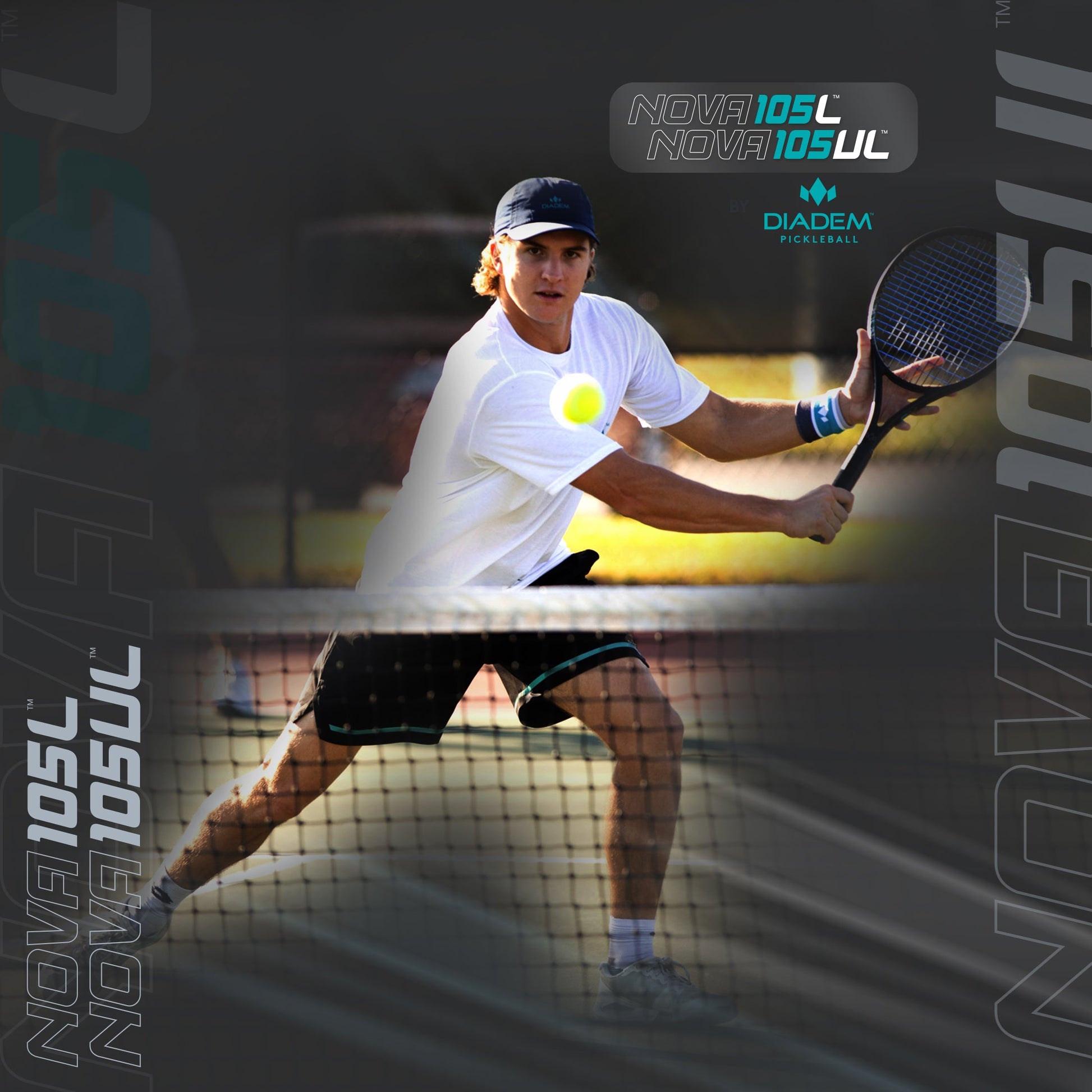 The Diadem Nova 105 Lite and Ultra Lite rackets are Diadem's first over size frames. After years of experimenting we have created the ultimate combination of a high end with function. These user-friendly and extremely forgiving 105 square inch head combines excellent stability and created the World's most comfortable sweet spot.