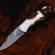 Handmade Authentic Damascus steel everyday carry (EDC) folding pocket knife with a Antler horn and Camel bone handle and a back lock. Perfect personalized gift for an anniversary, birthday, husband, boyfriend, father, or for groomsmen!