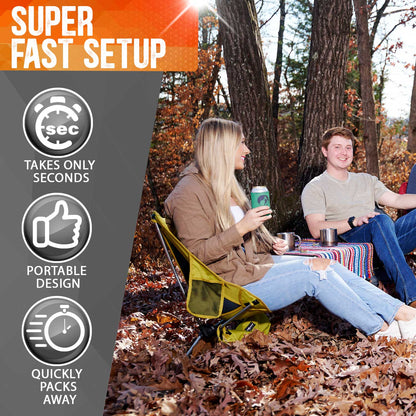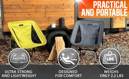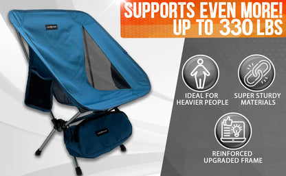The Pike Trail Camp Chair is designed differently than most chairs its size. Ours weighs only 2.2 pounds but is Strong Enough to Hold Up to 330 pounds!! No other ultralight chair on the market is designed like this! What you will find is that most chairs break down due to poor craftsmanship and cheap materials. Typically they only support weight up to 265 lbs and usually not for long. We spent years researching the compact chair market and made the changes to prevent this from happening! Don't be fooled by the imitators and their price point will often reflect this! In addition to our superior reinforced design, the Pike Trail Outdoor Chair is Ultra-Compact. The Folded Dimensions are 13" x 5" x 6" and even fits into carry-on luggage. Needless to say its extremely portable and super comfortable as well (just read our reviews). Stop lugging around the traditional heavy, awkward camp chairs and head into the outdoors with ease!