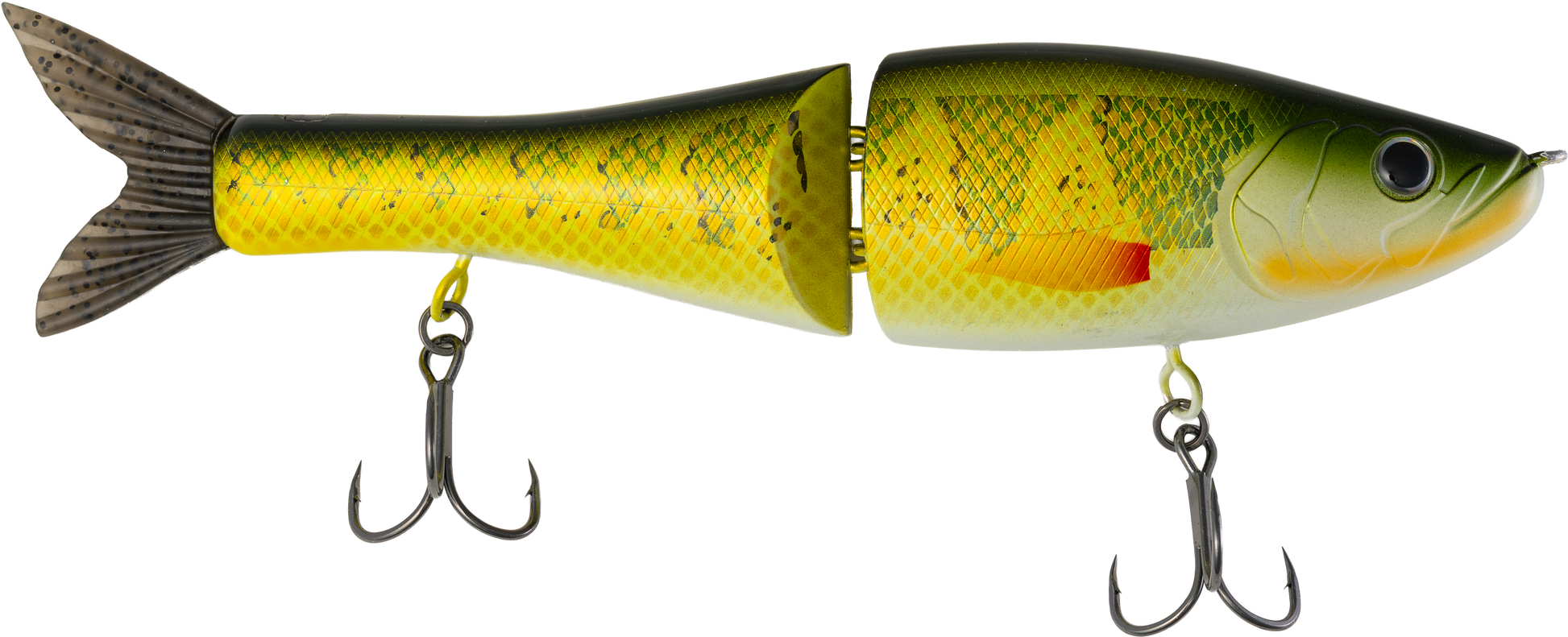 Poppa Pete is a silent slow-sinking glide bait weighing 5 Ounces and 10 inches in length, equipped with heavy-duty hardware, size 2/0 hooks, and rotating hangers. The tails are easily replaceable. Papa Pete has a nice wide glide on slow reel cranks and then can be shed fast for an erratic bait sh action and sinks extremely slow in a level position.