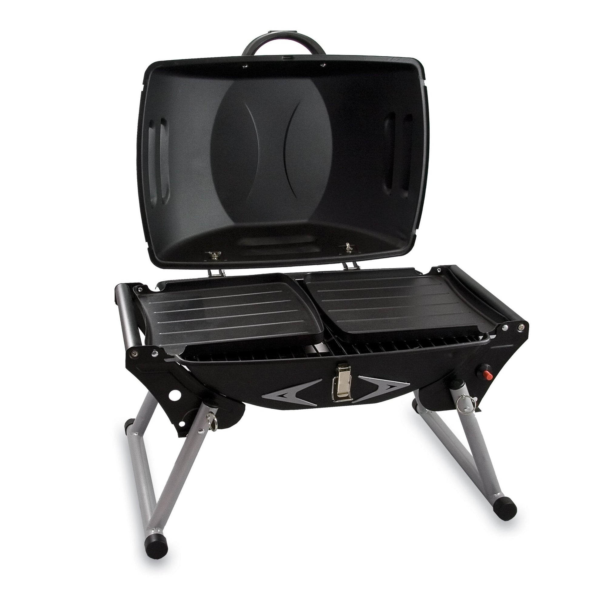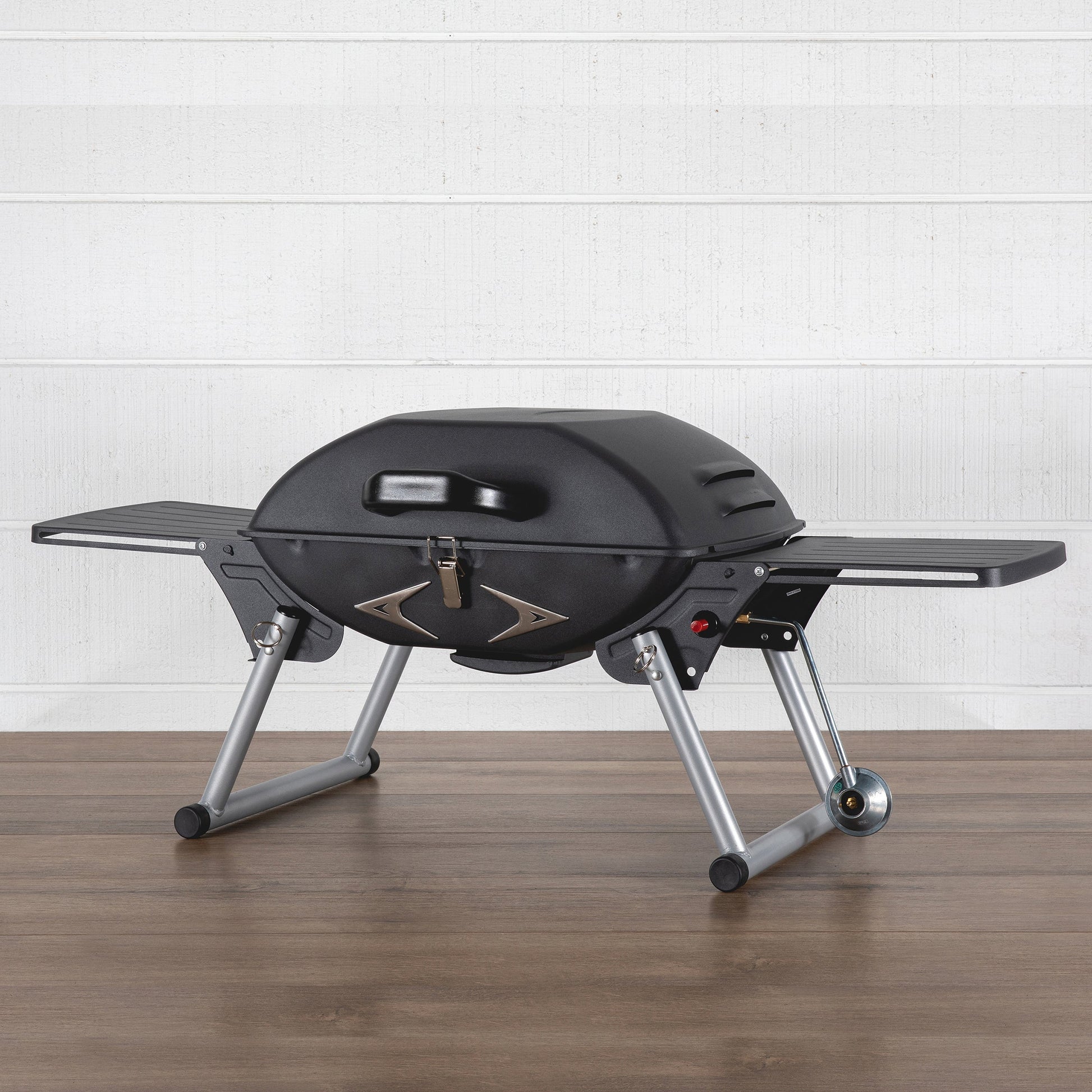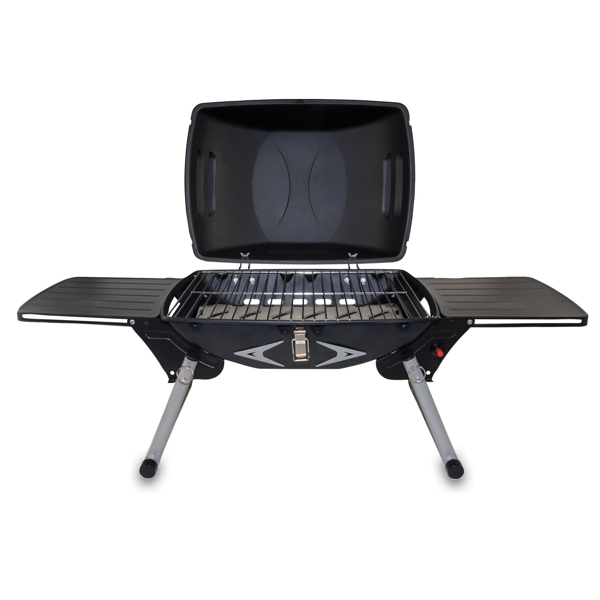 Bring the BBQ wherever you roam with the Portagrillo Portable Propane BBQ Grill, foldable grill made from cold-rolled steel with a built-in igniter, a grease tray, and sliding side tables for food preparation and storage. The extra-large handle keeps your fingers away from the hot metal and the foldable legs make this the perfect small gas grill for tailgating, picnicking, camping, or backyard staycations!