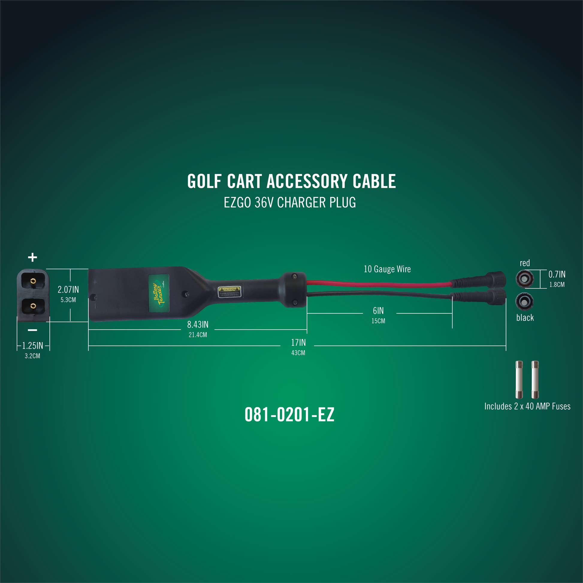 Our E-Z-GO charger plug is designed to be used with Battery Tender PowerPlus chargers for hassle-free installation. Simply connect one end to the charger and one end into your golf cart 36V plug.
