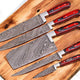 Upgrade your culinary experience with these custom handmade Damascus kitchen knives. Featuring razor-sharp Damascus steel blades ranging from 8 to 13 inches, these knives offer precision and durability. The exotic wood handle with a durable steel bolster ensures a comfortable grip and enhanced control. Perfect for professional chefs and home cooks alike. Comes with a premium leather roll for safe storage and transport.
