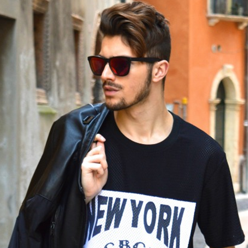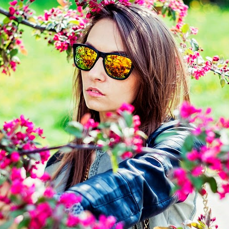 Modified classic horned rim frame that features a color mirrored lens and keyhole nose bridge for a better fit. Available in a variety of fresh colors for the warm and sunny seasons. Made with an acetate based frame, metal hinges and UV protected polycarbonate lens.