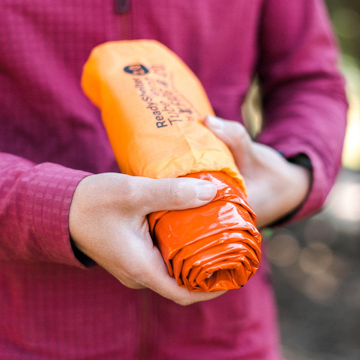 - HeatEcho® Technology – One side is waterproof bright orange, the other is made of HeatEcho® which reflects 90% of your body’s heat back to you, helping you to stay warm. Or reverse the tent to keep cool in the hot summer months.