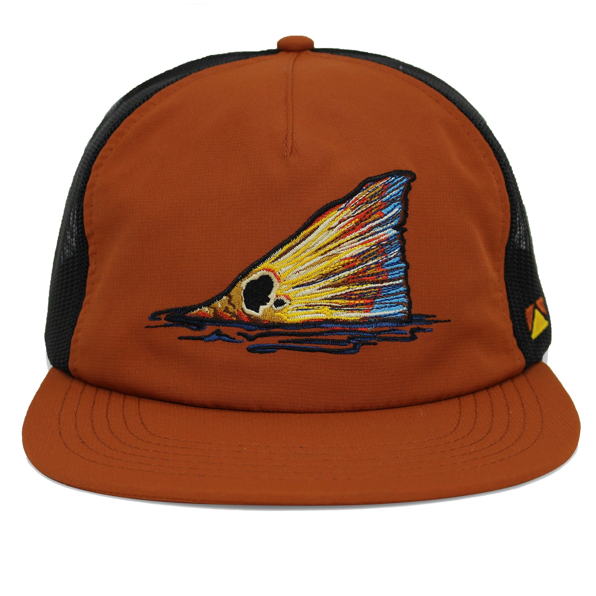 The redfish tail flat bill trucker hat is built on our Base Camp 5-Panel style. This saltwater fishing cap features a mesh back with a with a structured front and quality 10k stitch count redfish tail embroidery, on performance micro ripstop fabric. Our COMFORT SNAP closure couple the stretch of elastic with the adjustability of a snapback. Lastly, This new redfish hat features American Fit sizing which fits men's head sizes MD - XX.