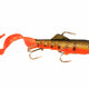 The Regular Super D swimbait is a 100% soft plastic lure and come in a 5oz weight. These lures use a tough BODY LOCK harness that will keep the body on during rough use. It is balanced with a jig head so it glides at a gentle 20 degree angle on the fall and swims horizontally when reeled in. The Regular Super D musky swimbait can be used as a crankbait, jerkbait or jig. When retrieved, it rocks back and forth as the curly tail waves frantically, a combination that drives large freshwater game fish crazy. Fish the Regular Super D swimbait with a slow, medium or fast retrieve while twitching and jerking over weeds, on weed edges and on or around structure. The Regular SuperD musky swimbait is 5 oz. and comes with a hand cut tail (14 inches with the tail out!). Also comes with taxidermic quality eyes. The Regular 5oz SuperD swimbait can be counted down at about 1 foot per second allowing you to put the bait in the fishes face at any depth. These are hand poured and come in 42 muskie fish catching colors, 3D eyes, fins, gill plate, scales, softer plastic for an even more realistic realfish movement. Our musky lure innovations are your key to success. Quality musky swimbaits made by the Tackle Industries company and not overpriced! This ultra tough swimbait can also be used for taking BIG trophy bass!