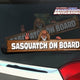 Outdoor lovers will appreciate this Sasquatch on Board waving a peace sign with a wood look back. Universal size fits most rear wipers.