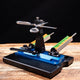 The Wicked Edge Scissor Attachment mounts in the vise of a Wicked Edge sharpener and clamps the scissors so they lean out over the side of the sharpener, allowing the sharpening stones to reach the extremely wide angle on the scissor's bevel. This attachment is compatible with all Wicked Edge models. We highly recommend sharpening scissors with stones of 1000 grit or finer.