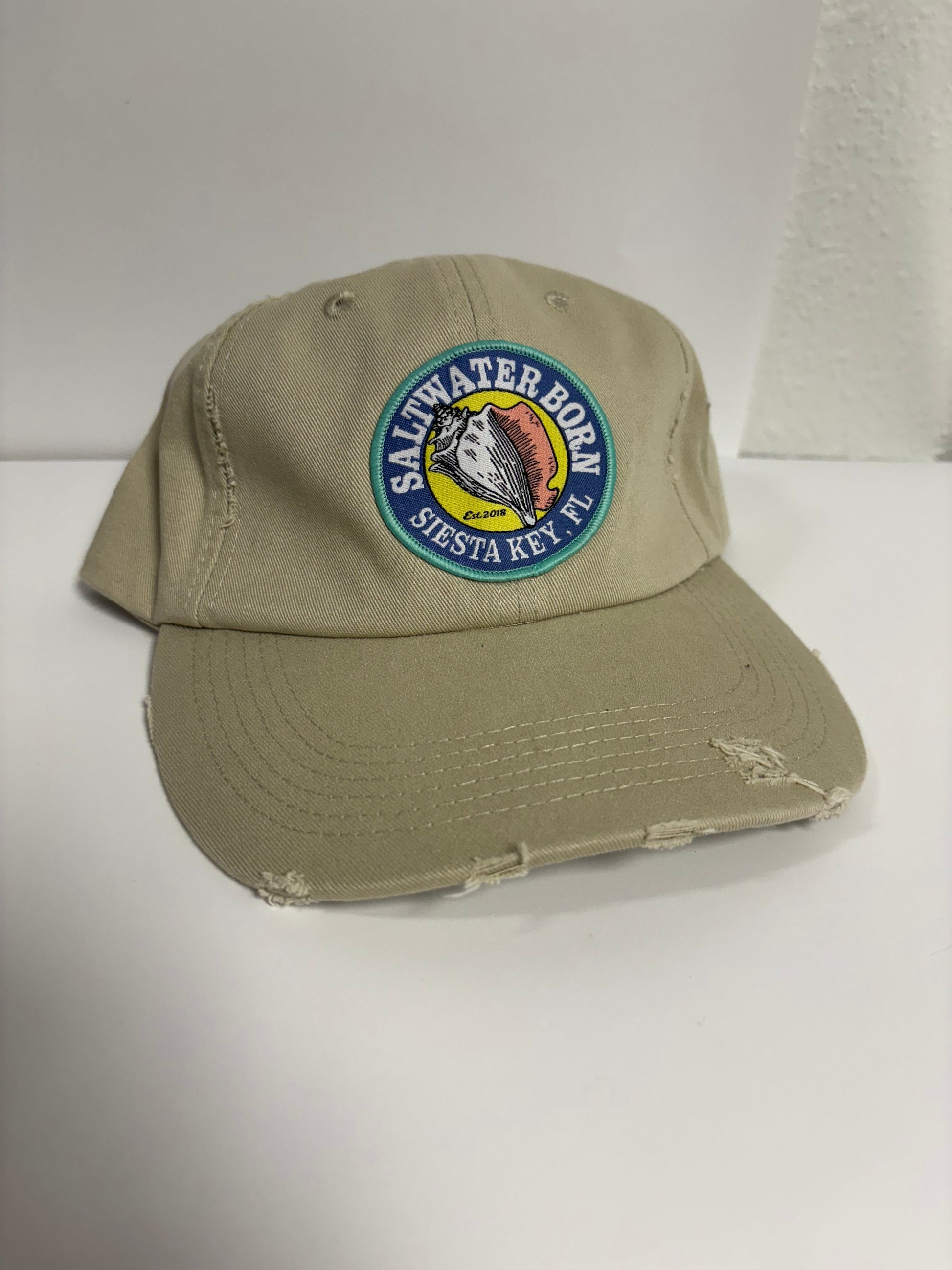 100% cotton twill, this vintage distressed hat offers a comfortable fit and great casual look. Low profile and unstructured fit with a self-fabric hideaway strap with a metal D-ring slider. Grab yourself a piece of Siesta Key today!
