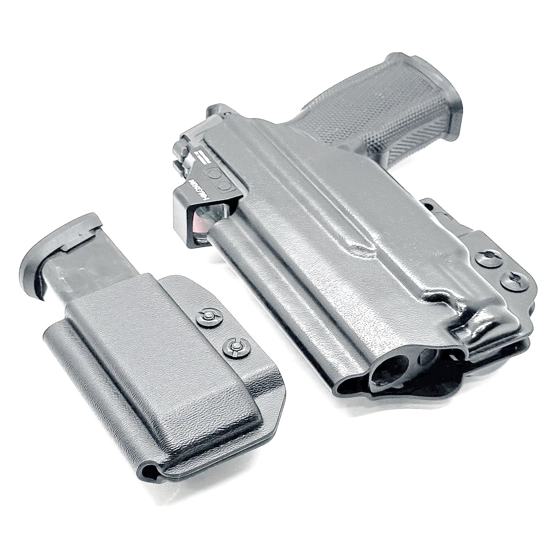 - Optional Modwing includes 2 inserts to allow the user to adjust the amount of leverage placed against the inside of the belt to reduce firearm printing. The location of the Modwing provides room for your fingers when drawing the pistol.
