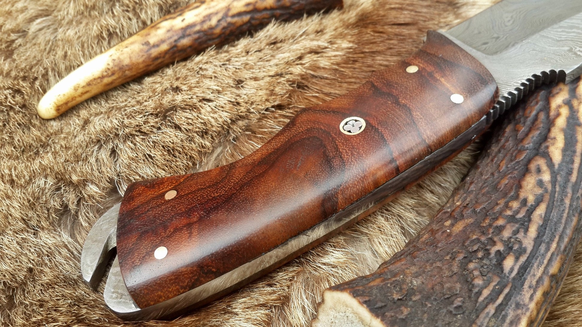 Introducing The Rosewood Edge, a finely crafted skinning blade featuring a custom handmade full tang Damascus steel blade. This 7.5-inch knife combines a razor-sharp edge with a beautifully polished rosewood handle, offering both elegance and durability. The blade boasts a Rockwell Hardness of 55-58 HRC, ensuring top performance for your skinning needs. Complete with a high-quality leather sheath, The Rosewood Edge is perfect for hunters and outdoor enthusiasts alike. Available now at KBS Knives.