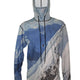 This Mountaincognito lightweight SunPro Hoodie depicts the freedom of flight of a snowboarder above the mountains. The sun protective UPF50 Sunpro Hoodie features a lightweight (150gr.) 4-way stretch fabric (85% polyester 15% Spandex) for comfort and fit unmatched. An internal neck gaiter built into the hood is included for free. Great sun protection, moisture wicking apparel.