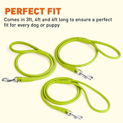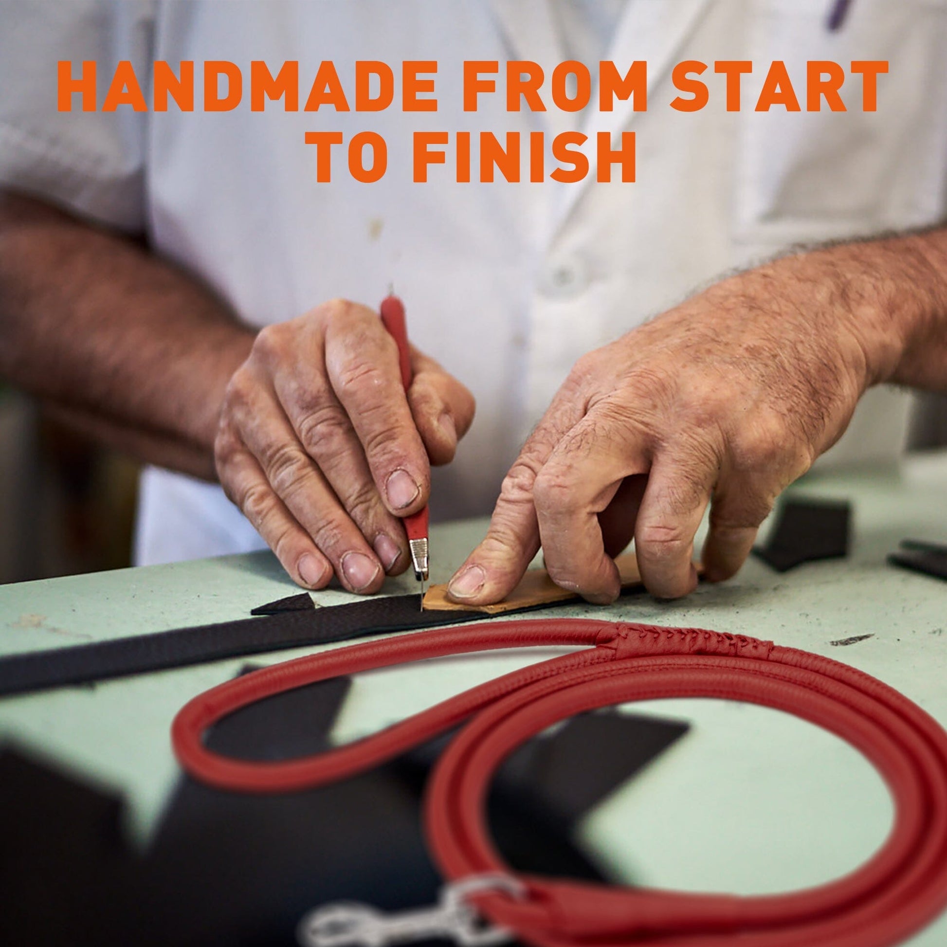Our European technology features nylon cord wrapped in leather. Picture will not do enough justice for these leashes, you have to feel it to appreciate it and see how soft they are. The leather is dyed it is not painted over the top, which means the color will not come off or fade. Matching collars are also available.