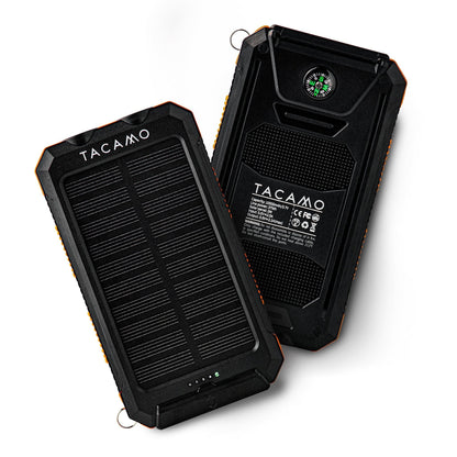Our TACAMO Solar Recharging USB Power Bank w/Integrated Dual-LED Emergency Flashlight and Micro-Compass is a must-have item for Outdoor Enthusiasts and teen-age kids. Don't get caught out in the cold, with a dead battery and no way to communicate. This solar powered phone charger is exactly what you need to stay connected in an emergency. And on top of that, it's rated at IP6...one of the toughest waterproof ratings available.