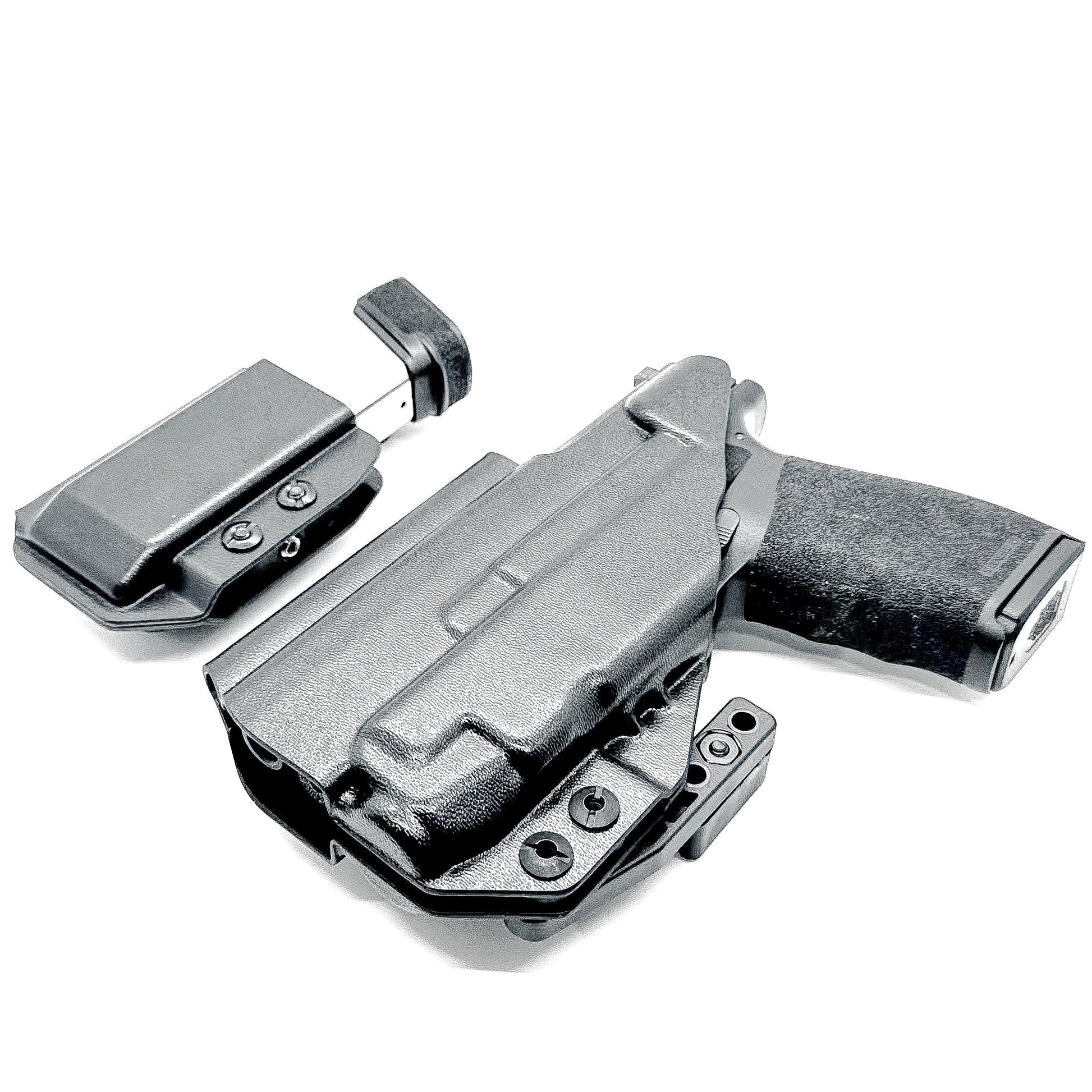 This is our Right-Hand combination package for customers looking for an Inside Waistband Holster designed to fit the Springfield Hellcat Pro handgun with the Streamlight TLR-7 X or TLR-7 A light mounted to the pistol and a Hellcat Pro Inside Waistband Magazine Carrier.